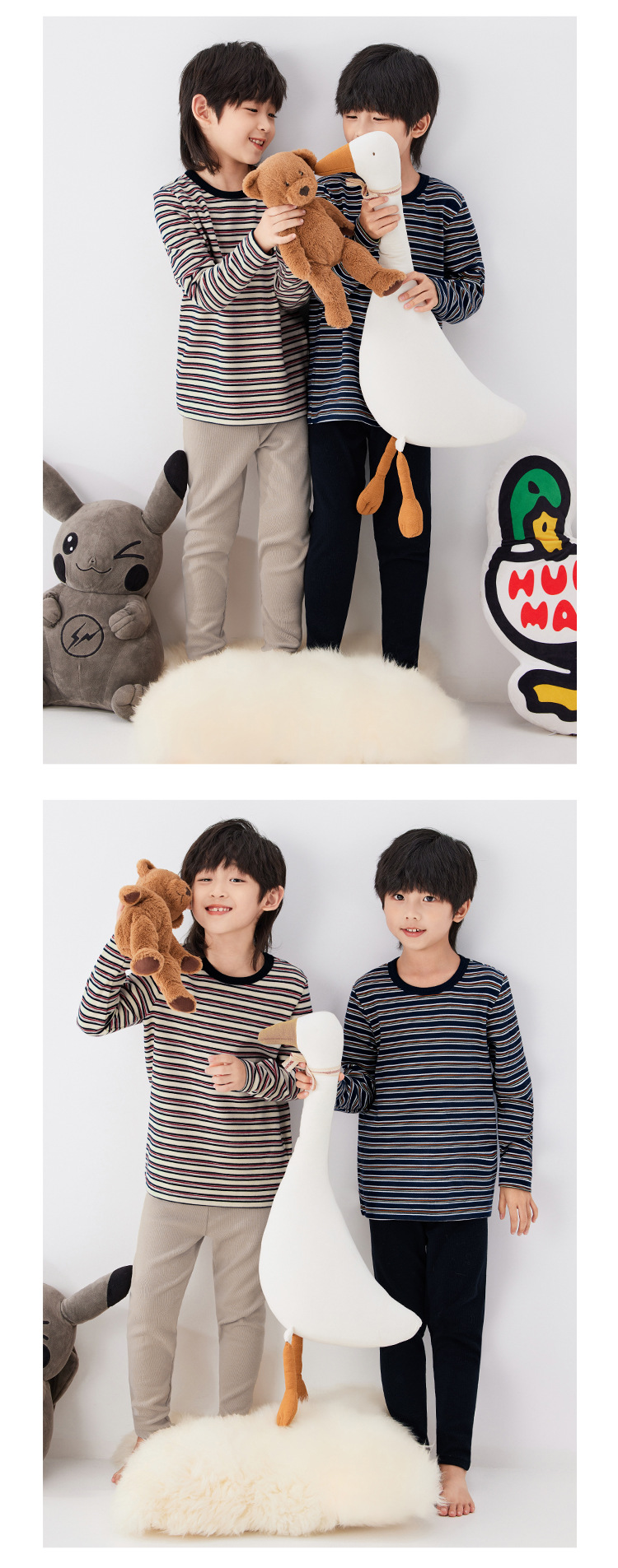 EK 아동복 가을 겨울 신작 홈웨어 소년 따뜻하고 편안한 줄무늬 중대형 아동 피부 친화적인 부드러운 잠옷 세트스토어 가기