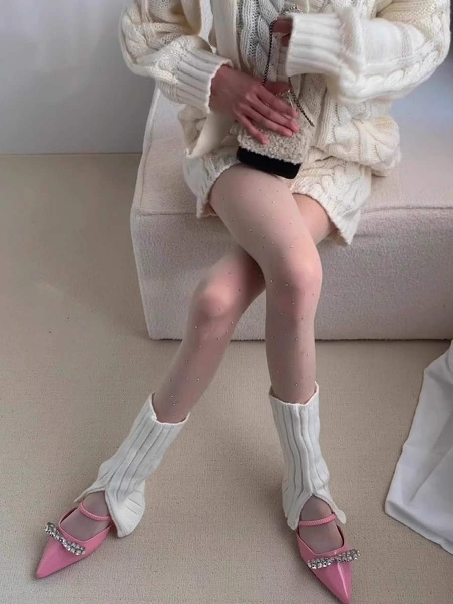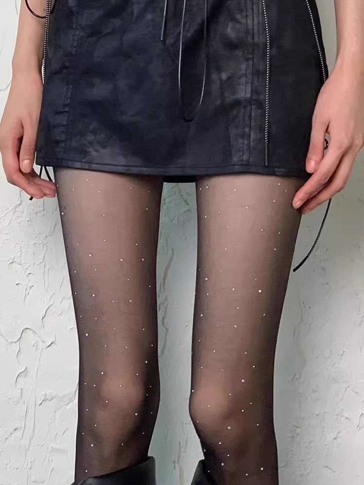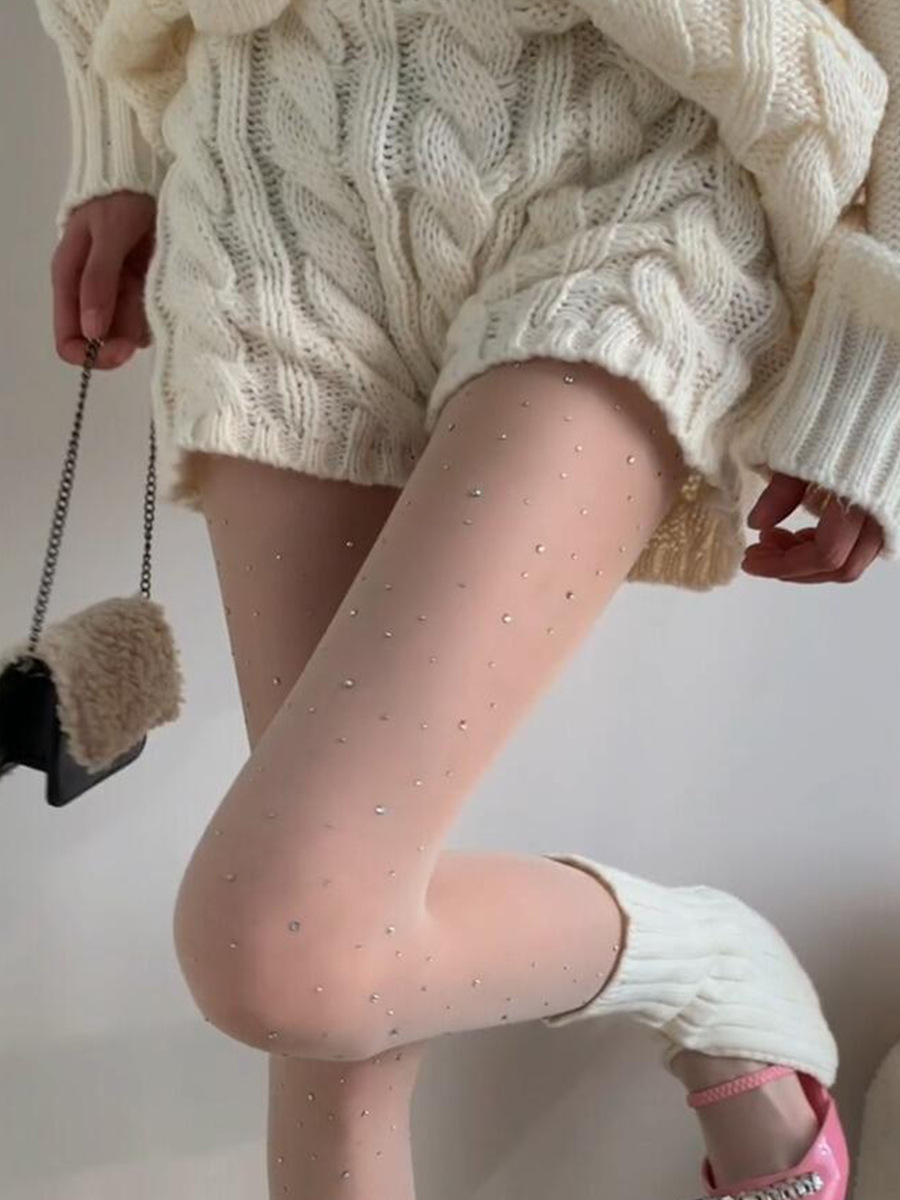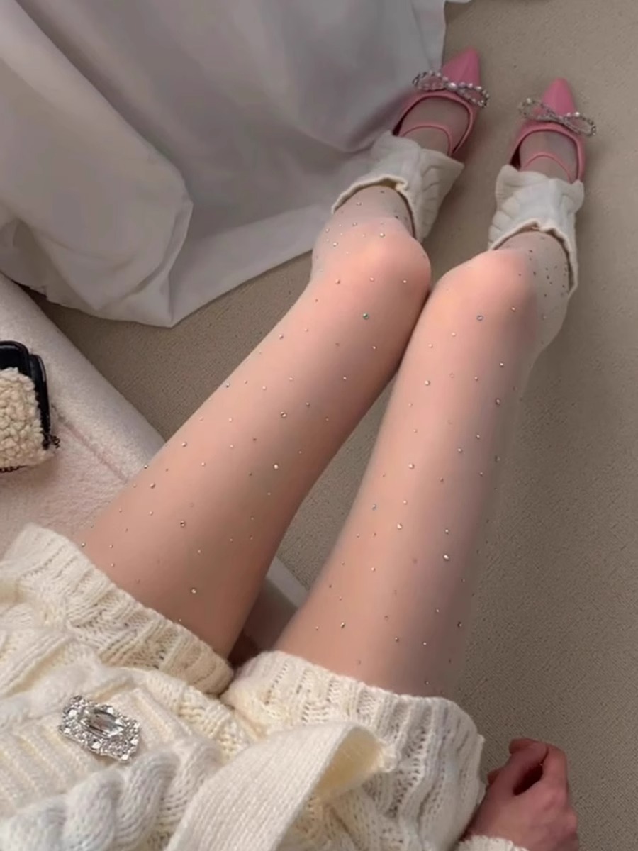 블링 다이아몬드 레트로 플래시 스타킹 소녀 핫 소녀 플래시 다이아몬드 초박형 순수한 욕망 스타 도트 화이트 실크 팬티 스타킹스토어 가기