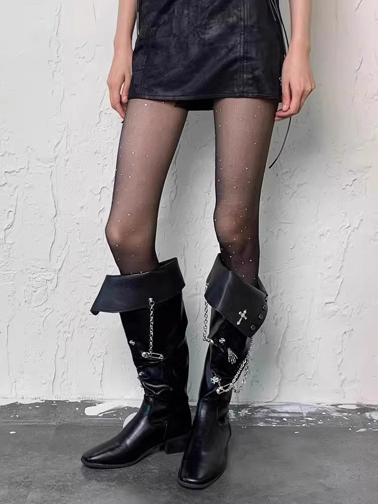 블링 다이아몬드 레트로 플래시 스타킹 소녀 핫 소녀 플래시 다이아몬드 초박형 순수한 욕망 스타 도트 화이트 실크 팬티 스타킹