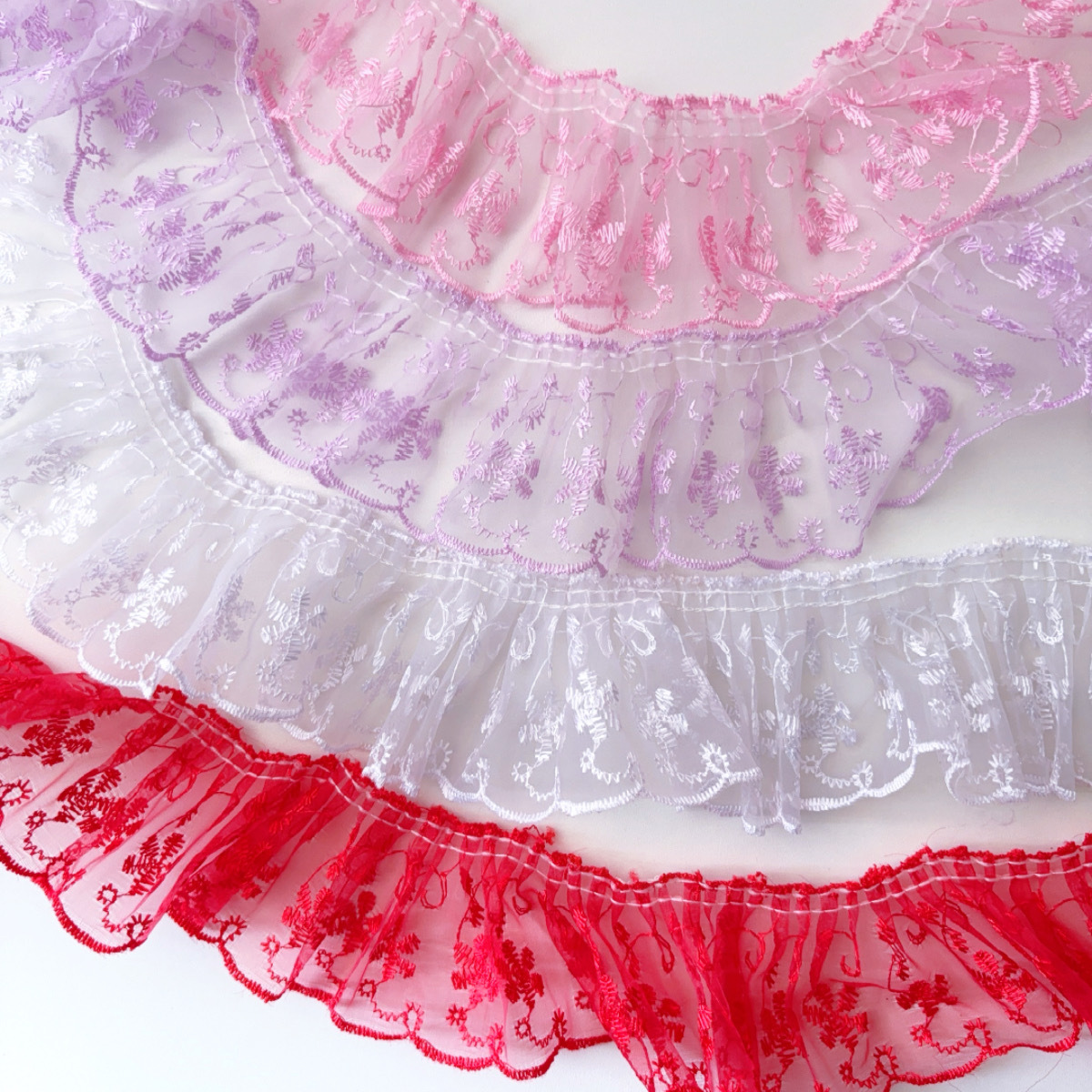 의류 및 모자 소재, 가장자리 꽃 액세서리 도매 6.5cm 자수 우산 레이스 주름 레이스 액세서리