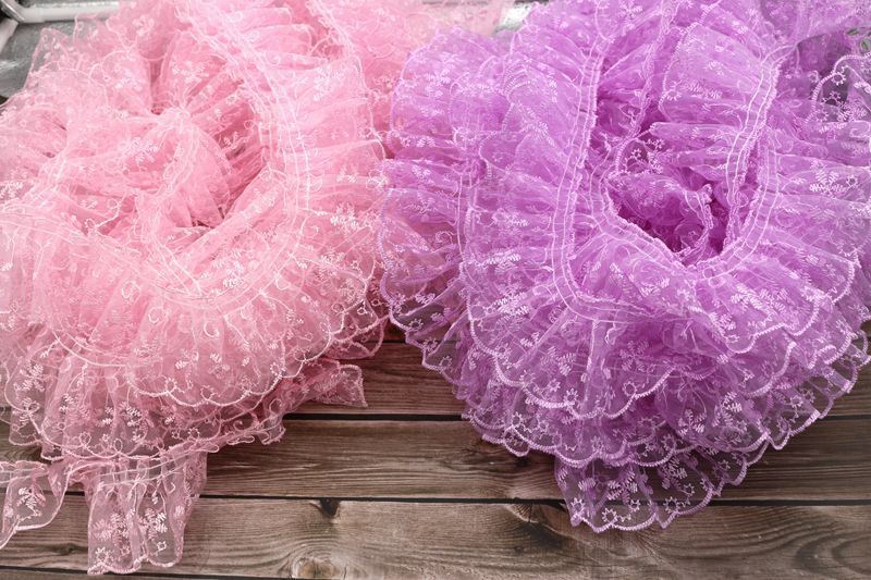 의류 및 모자 소재, 가장자리 꽃 액세서리 도매 6.5cm 자수 우산 레이스 주름 레이스 액세서리스토어 가기