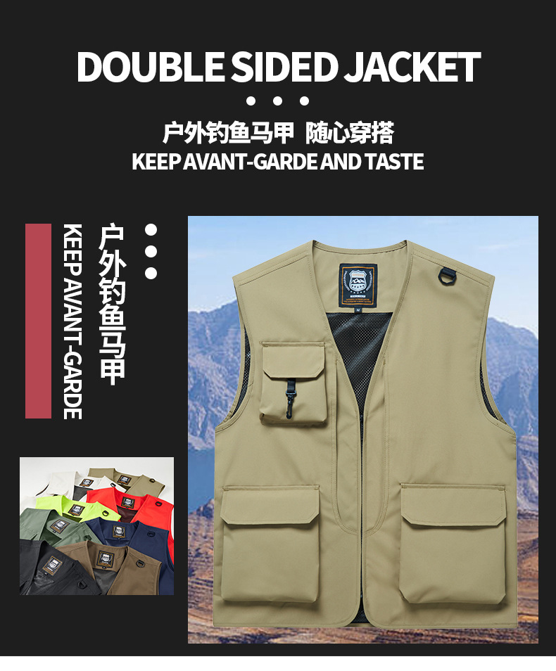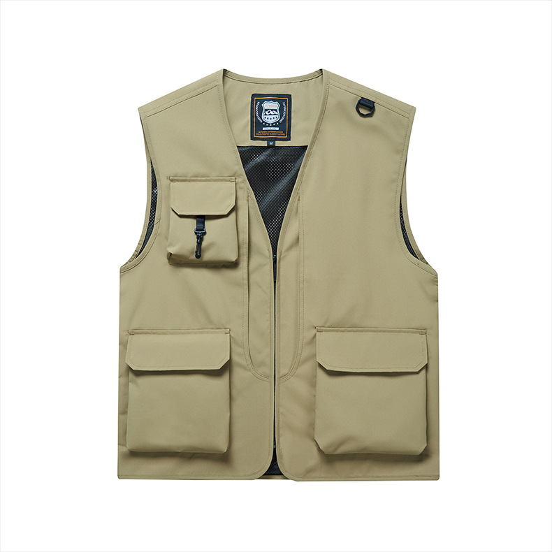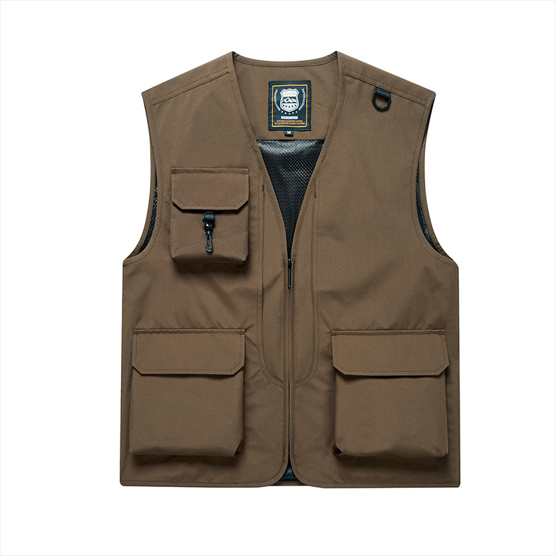 무료 배송 크로스 보더 봄, 가을 조끼 남성 야외 레저 낚시 사진 v 넥 조끼 작업복 멀티 포켓 얇은 프린트 l