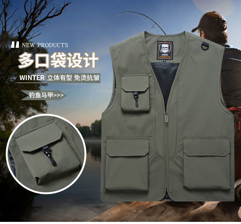 무료 배송 크로스 보더 봄, 가을 조끼 남성 야외 레저 낚시 사진 v 넥 조끼 작업복 멀티 포켓 얇은 프린트 l스토어 가기