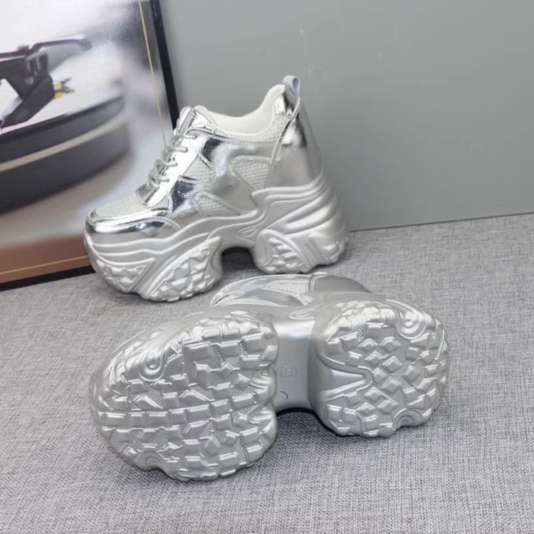여성을위한 슈퍼 두꺼운 밑창 플랫폼 아빠 신발 2025 봄 여름 새로운 작은 실버 캐주얼 신발 높이 증가 슬리밍 스포츠 신발