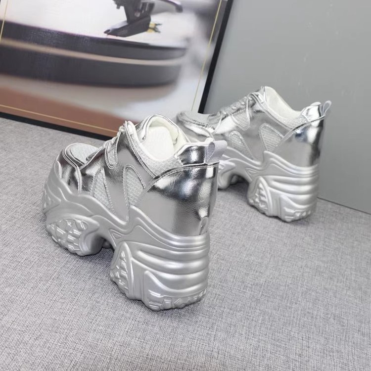 여성을위한 슈퍼 두꺼운 밑창 플랫폼 아빠 신발 2025 봄 여름 새로운 작은 실버 캐주얼 신발 높이 증가 슬리밍 스포츠 신발스토어 가기