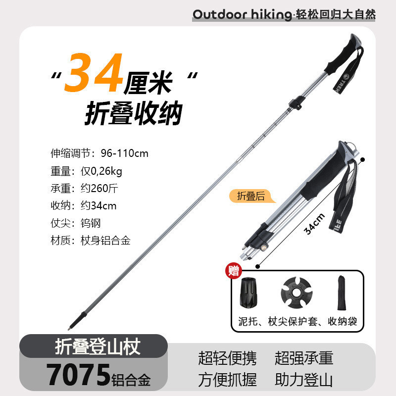 7075 트레킹 스틱 알루미늄 합금 텔레스코픽 스틱 등산 장비 지팡이 전문 야외 하이킹 남성과 여성 초경량