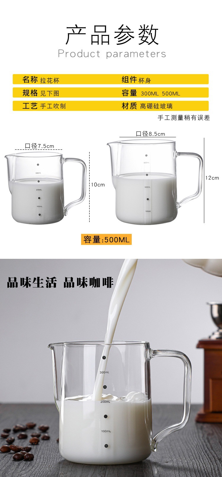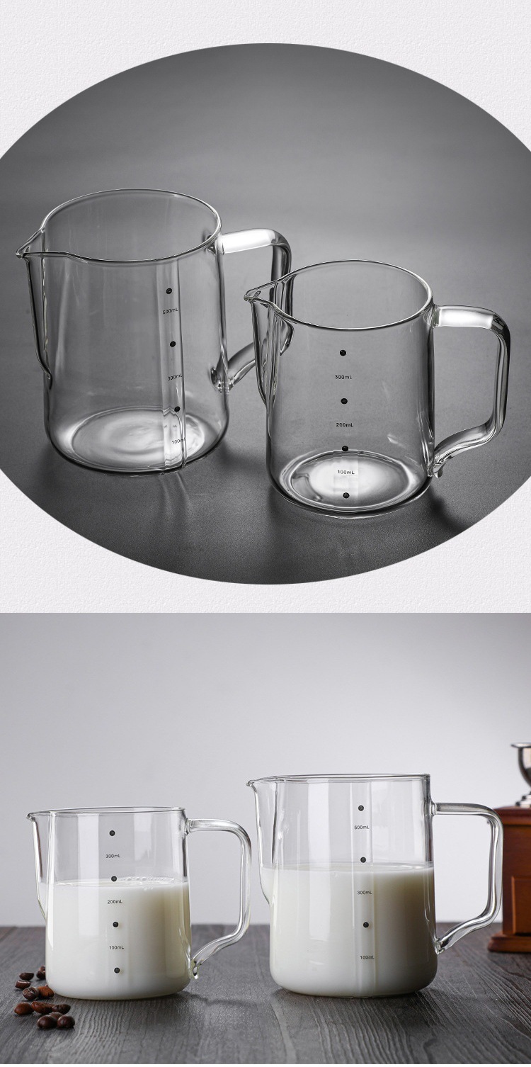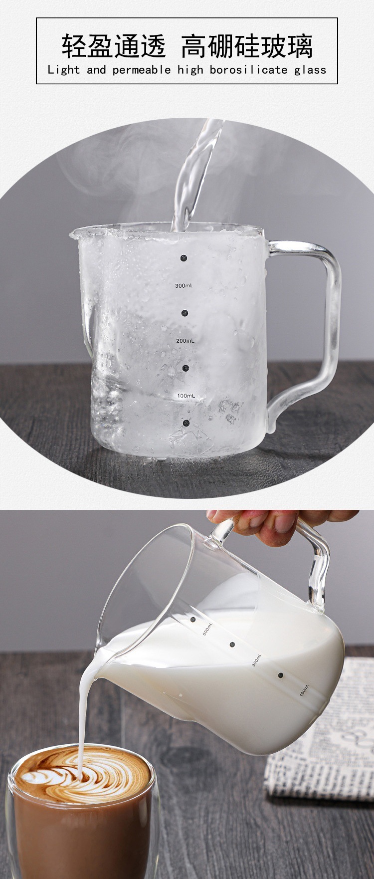날카로운 입이있는 투명한 컵 유리 스케일 특수 컵 우유 거품 커피 컵 컵 전자 렌지로 가열 할 수 있습니다.