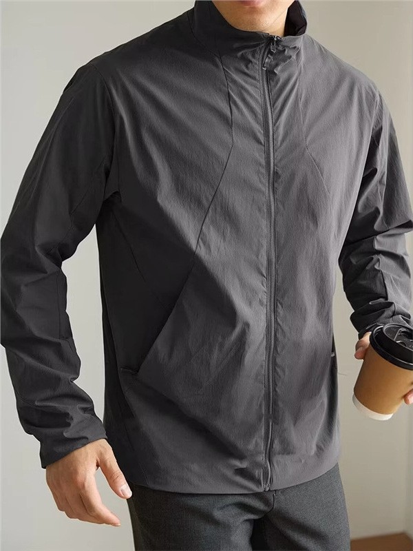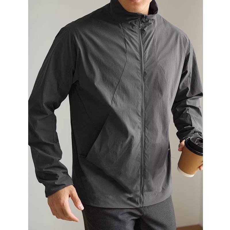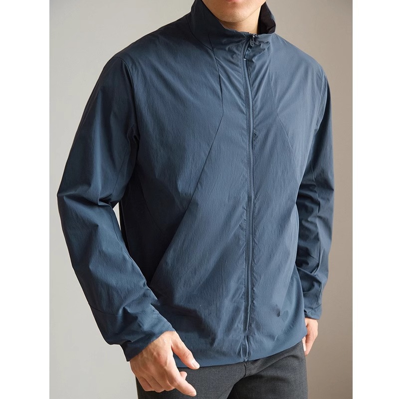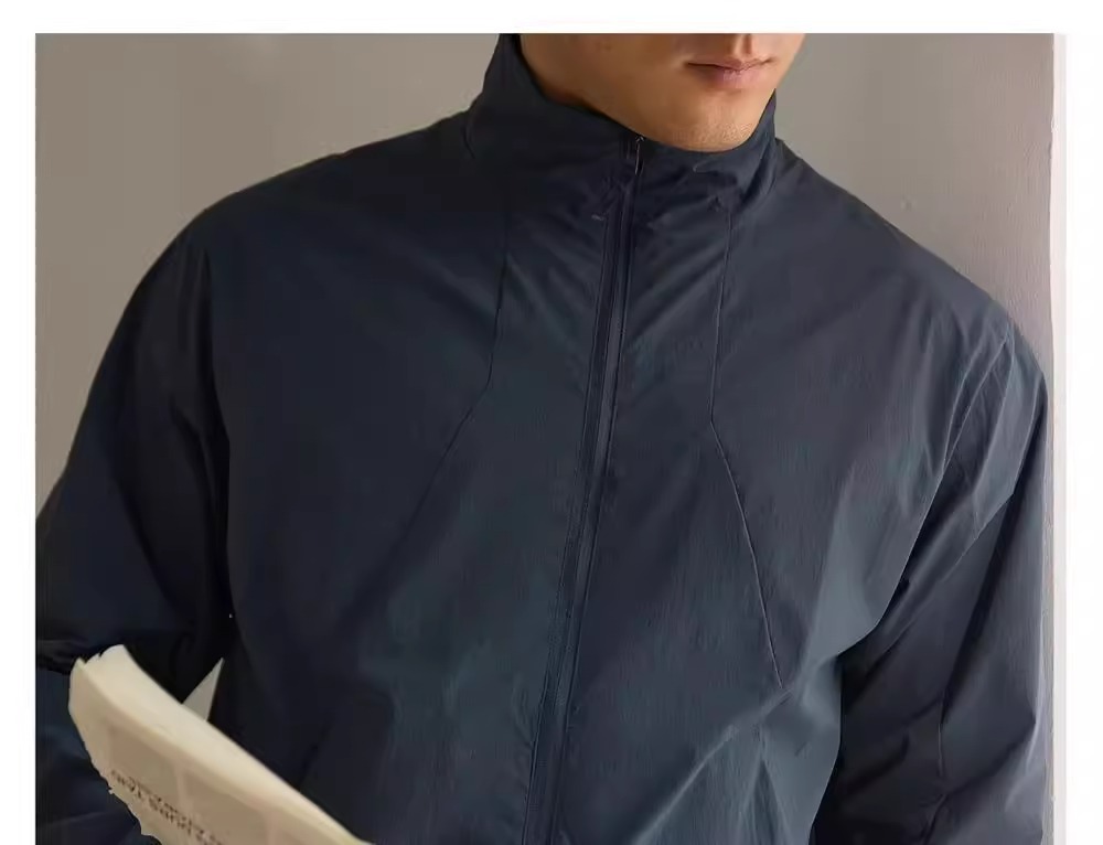 [여행자 시리즈] 얇고 가벼운 봄, 가을 스탠드 칼라 능직 방풍 및 자외선 차단 재킷 통근용 비즈니스 재킷