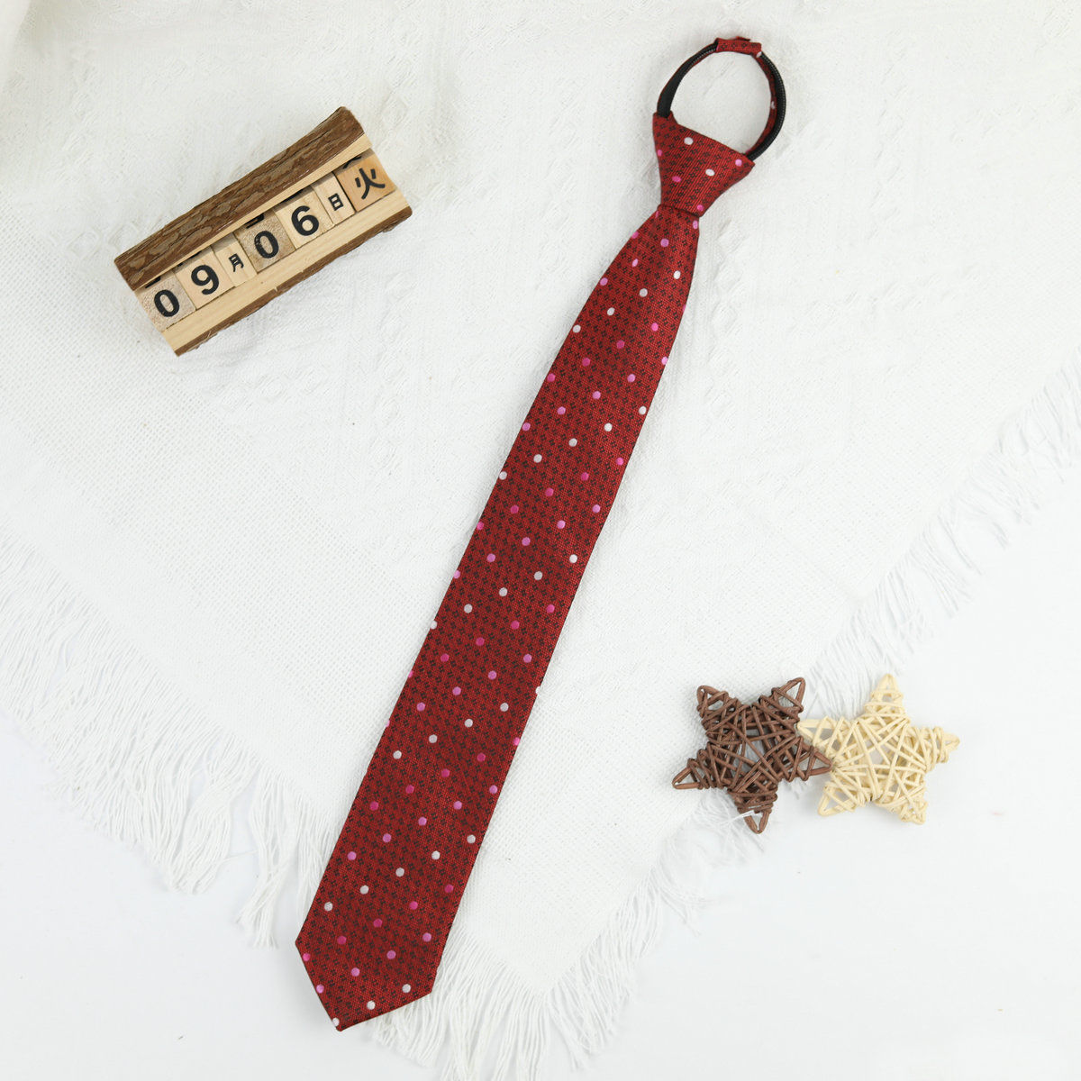 여성과 학생을 위한 포멀 비즈니스 원풀 스트라이프 솔리드 컬러 지퍼 타이 레드와 블랙 전문 타이스토어 가기
