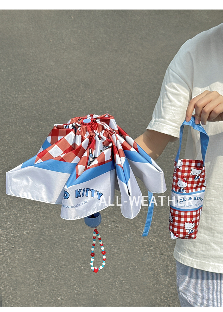 어린이 귀여운 휴대용 소형 50% 태양 우산 선 스크린 자외선 보호 여성 헬로 키티 우산 햇빛스토어 가기