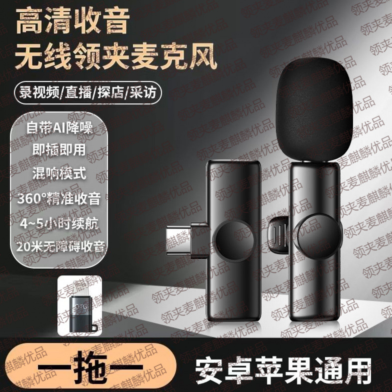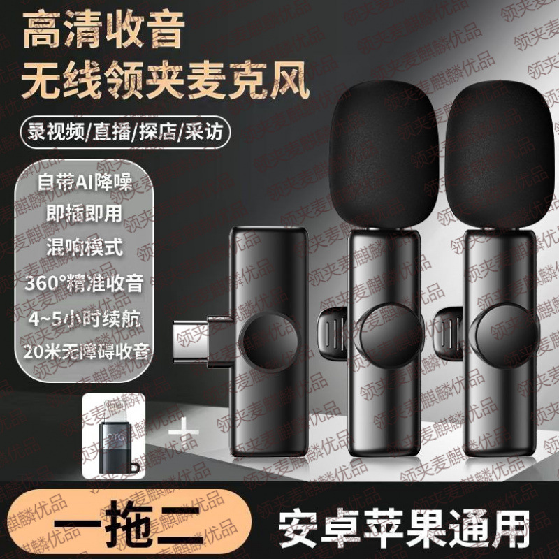무선 라발리에 마이크 1대2 Douyin Kuaishou 라이브 짧은 비디오 vlog 소음 감소