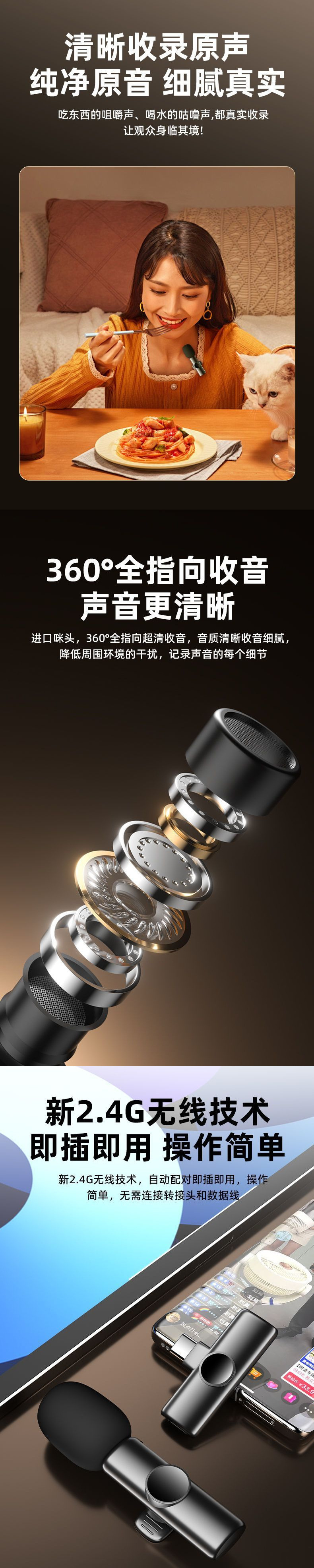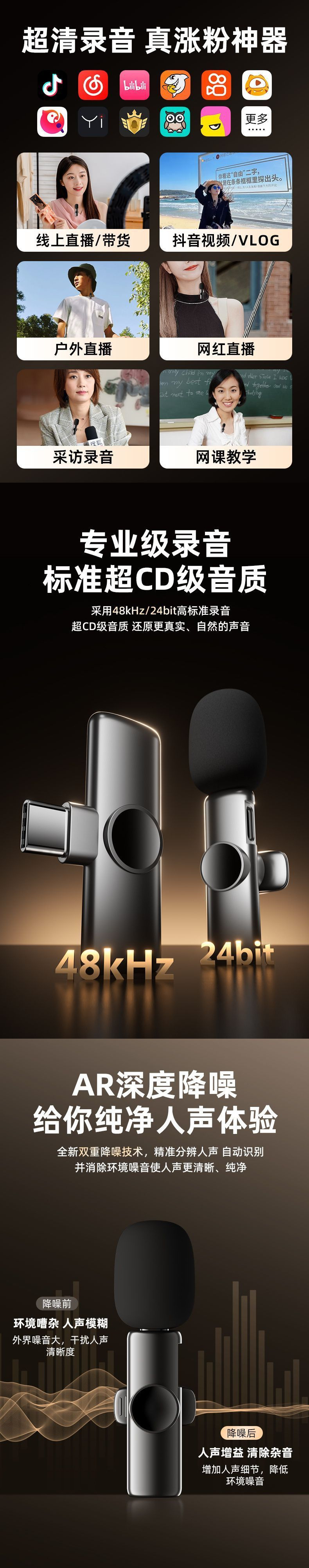 무선 라발리에 마이크 1대2 Douyin Kuaishou 라이브 짧은 비디오 vlog 소음 감소스토어 가기