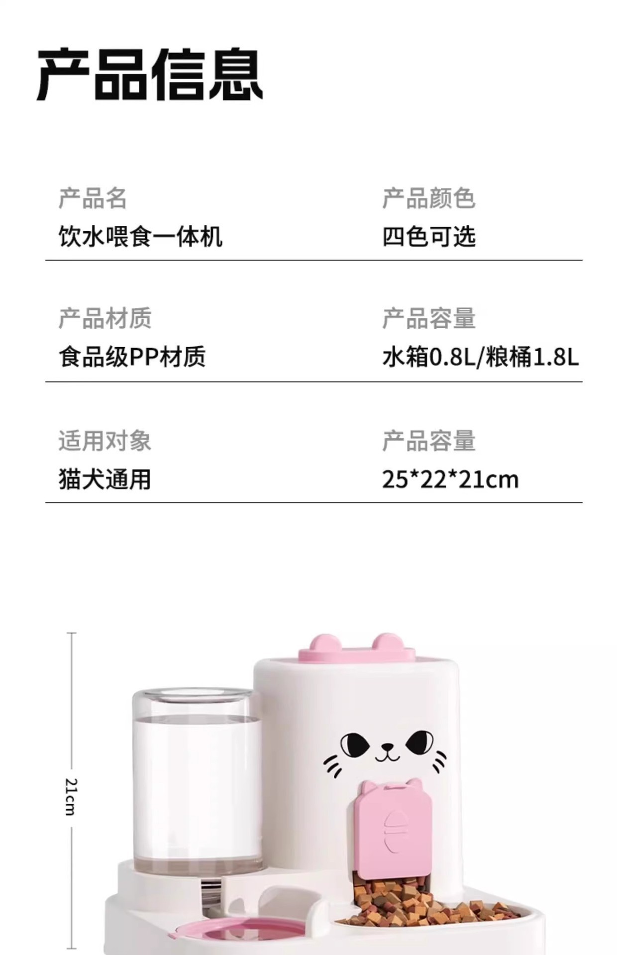 • 고양이 얼굴 일체형 [식수공급기]-핑크