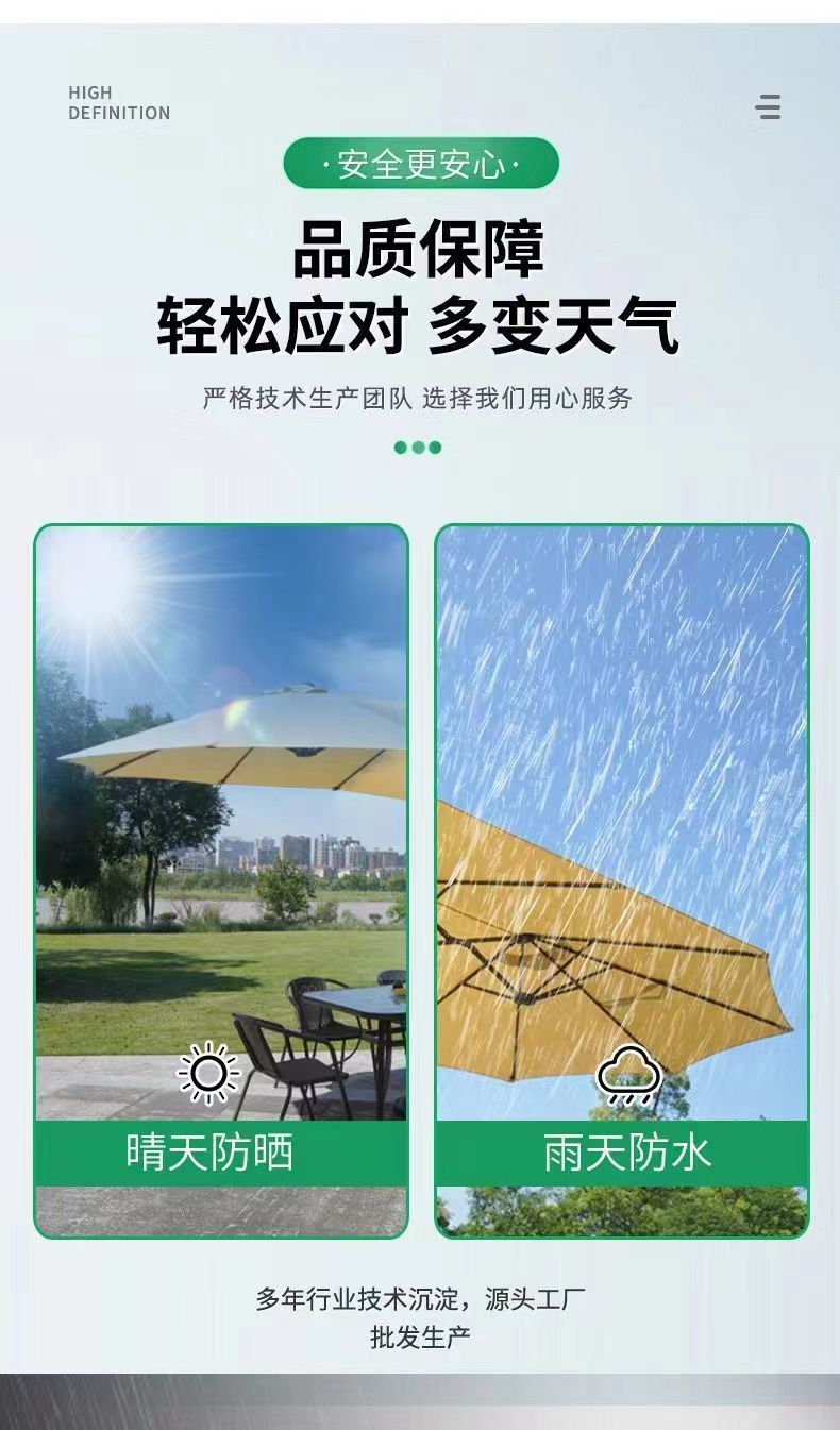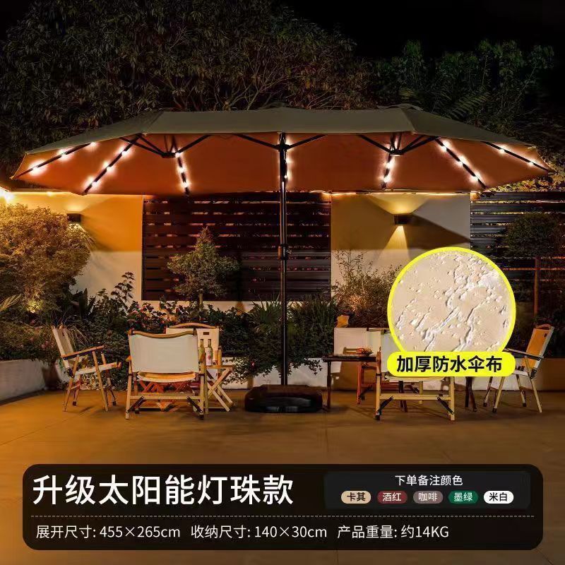 • 빛이 있는 태양광 카키색 3개 우산에는 물탱크 80kg개가 포함되어 있습니다.