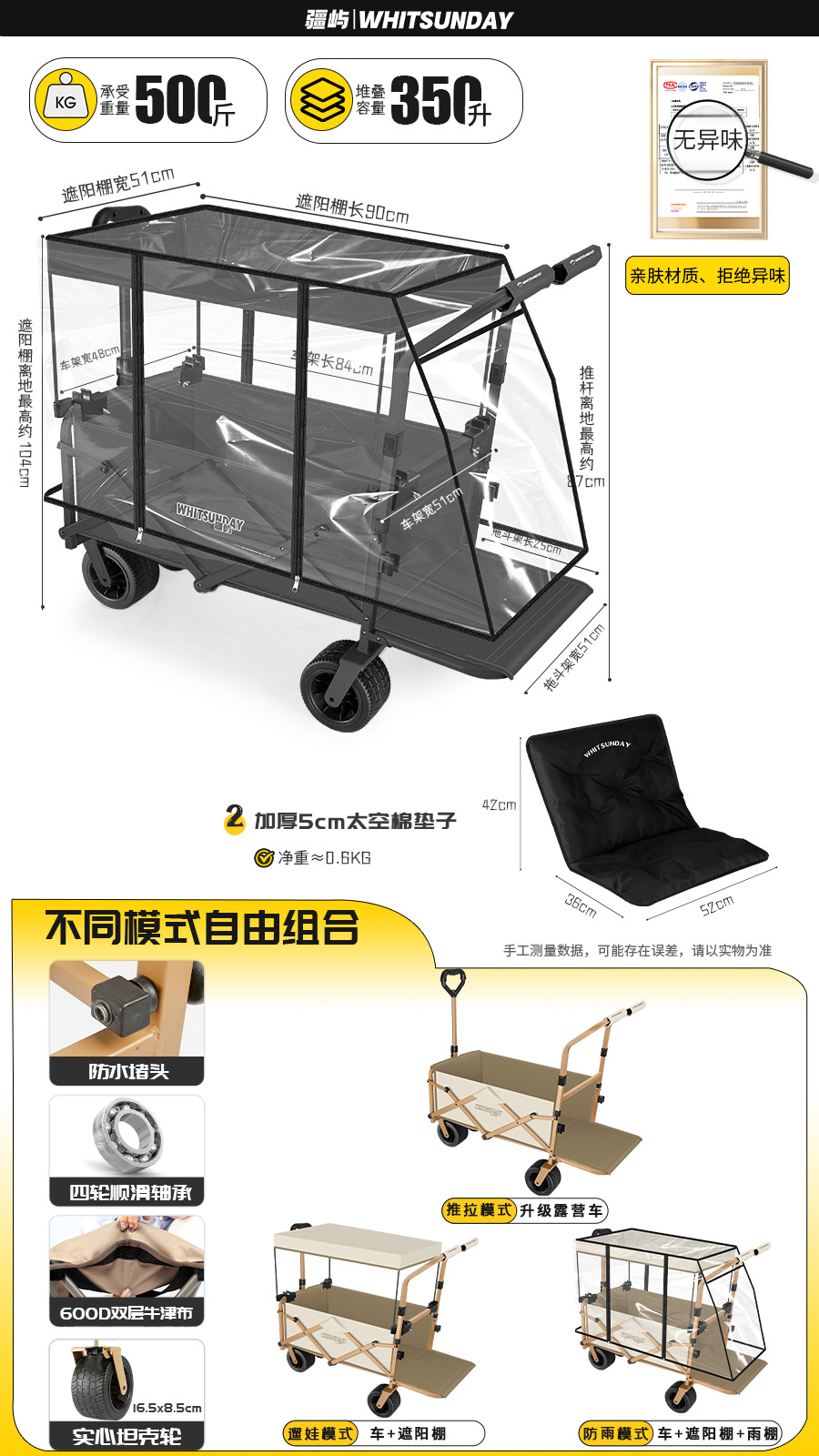 • [블랙] 항공기 휠 푸시로드 스타일 드래그 버킷 + 차양 + 캠핑카 두꺼운 시트 쿠션