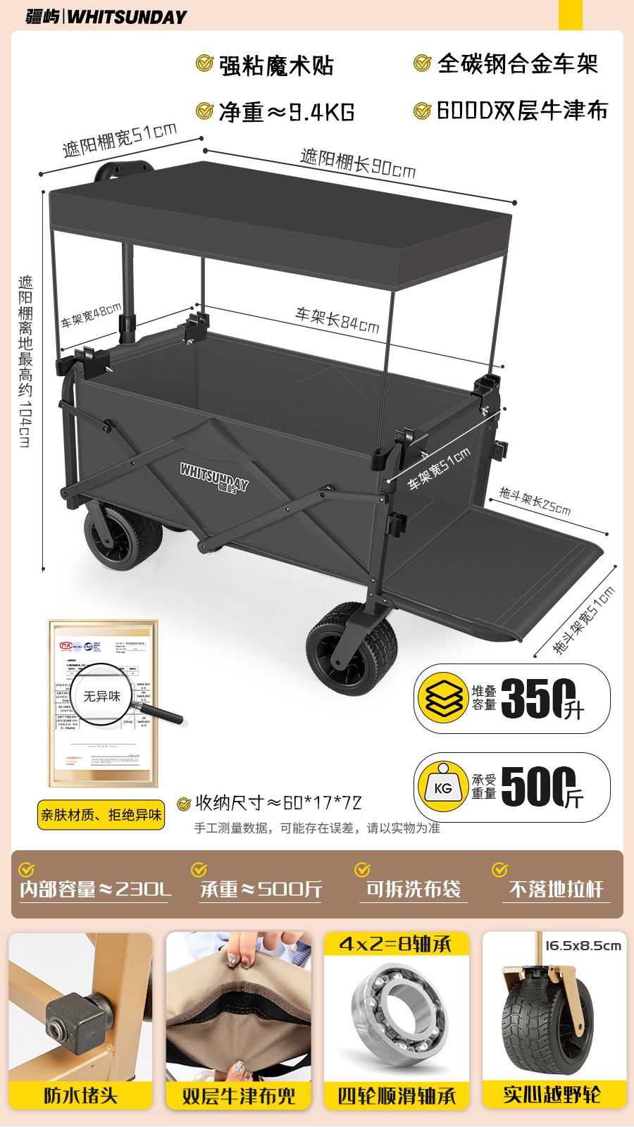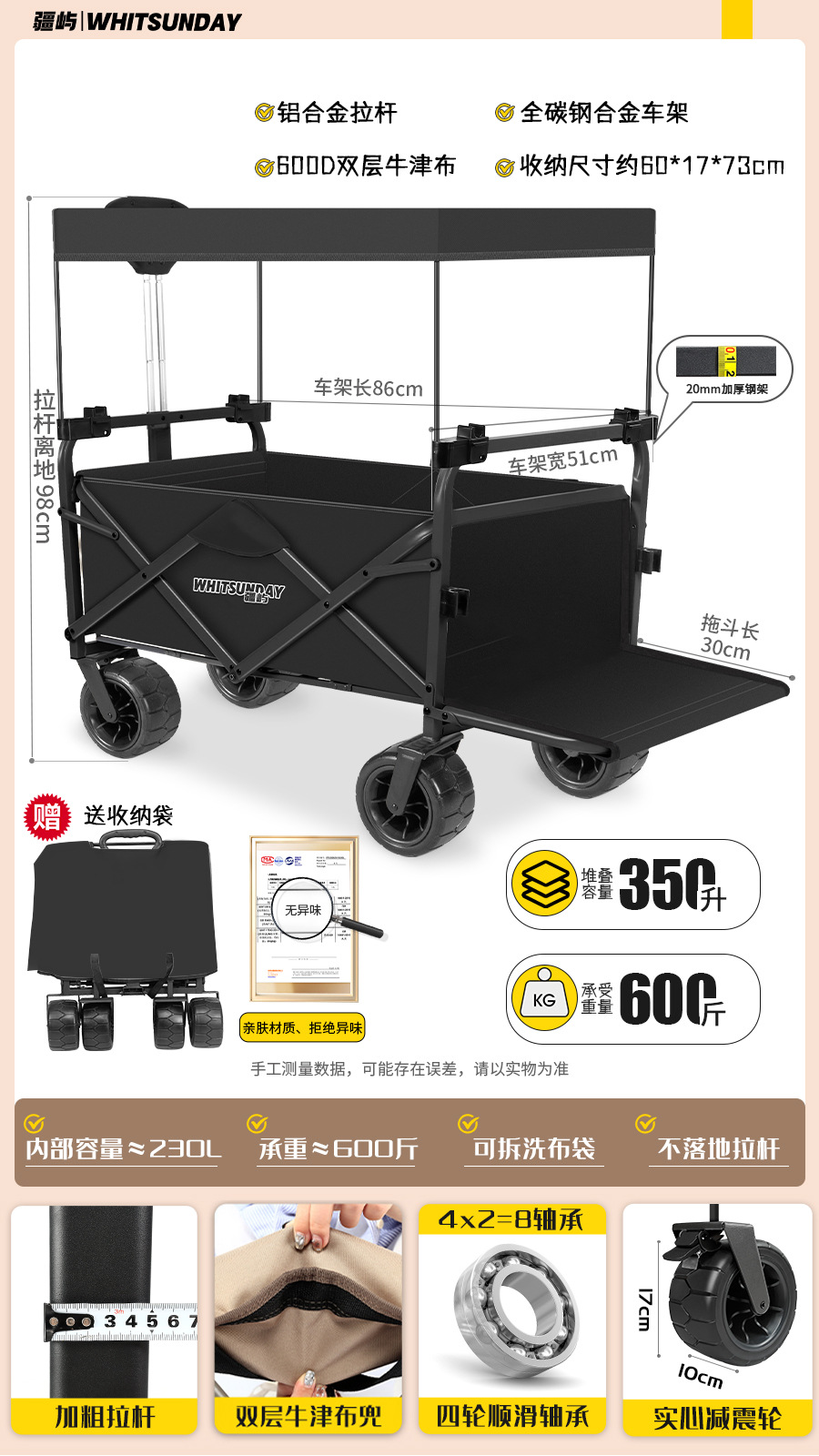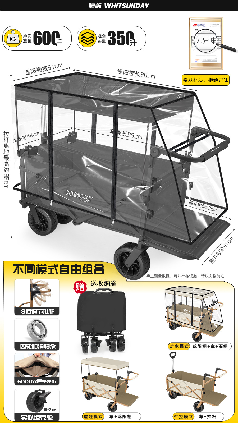 • [블랙] 전지형 트레일러 버킷 모델 + 자외선 차단 캐노피 + 더블 디스크 브레이크 탱크 휠