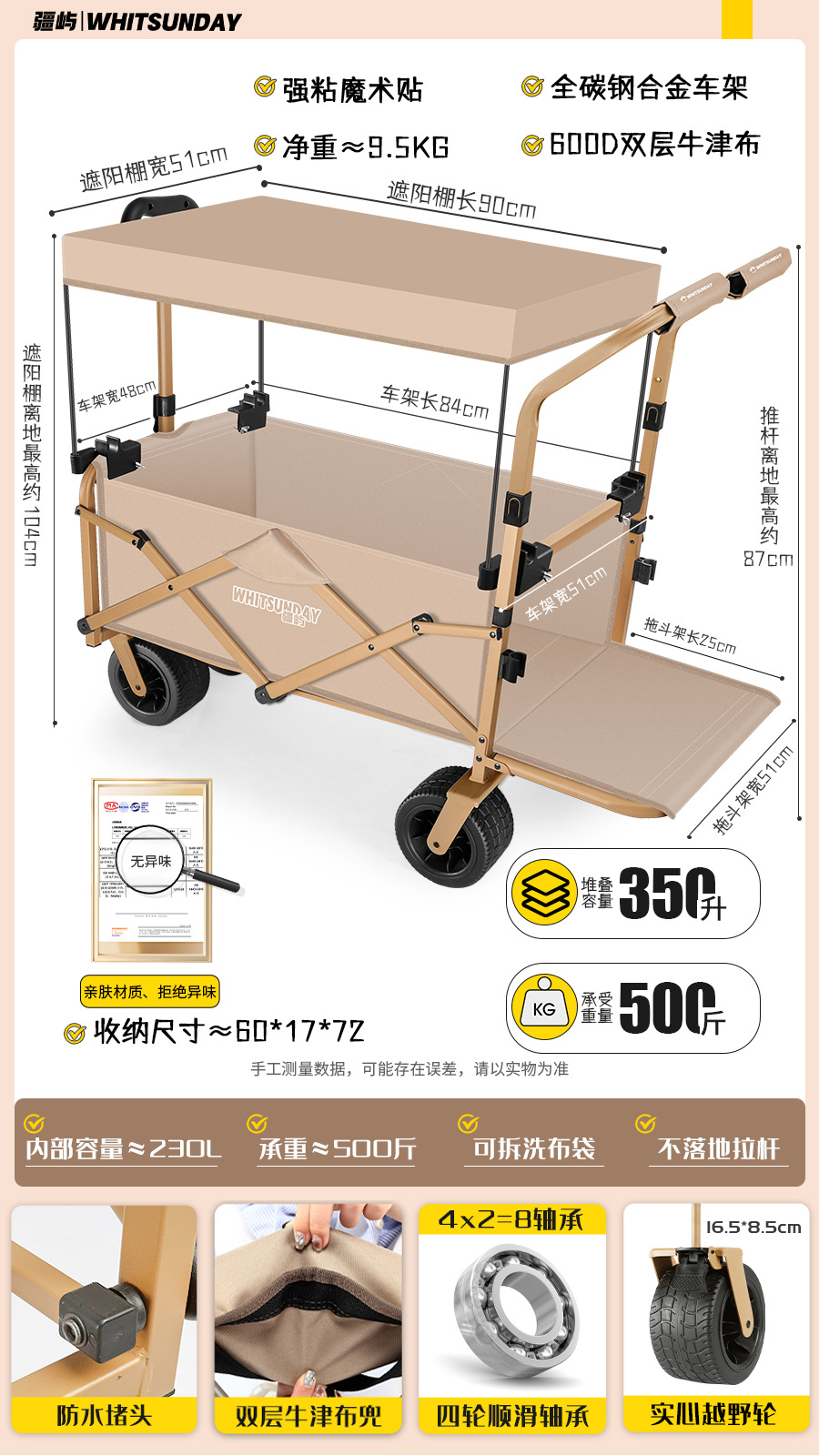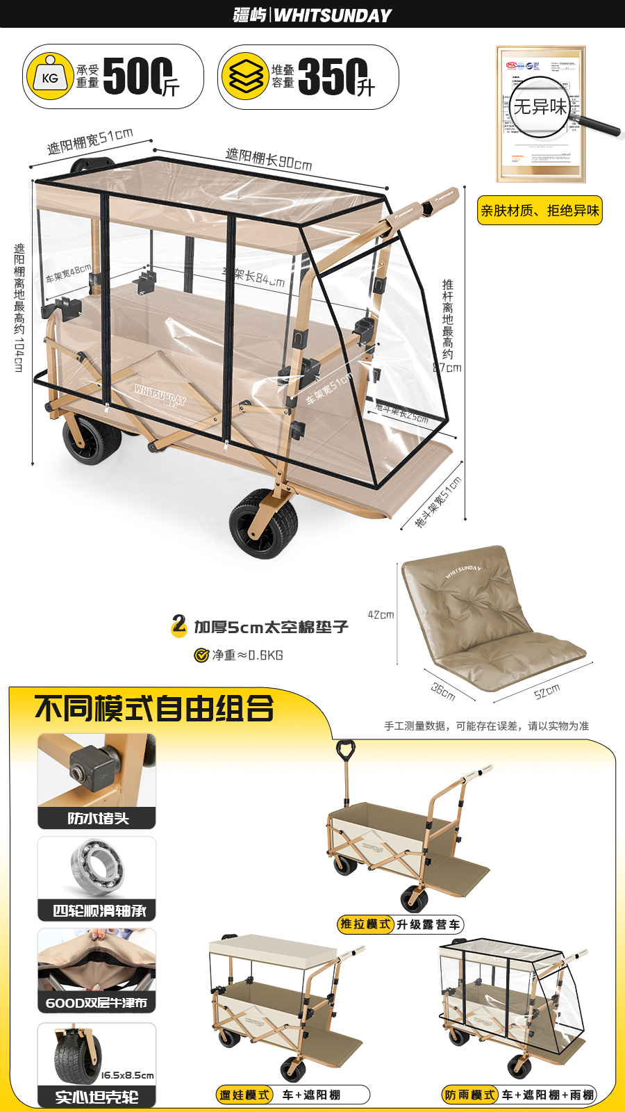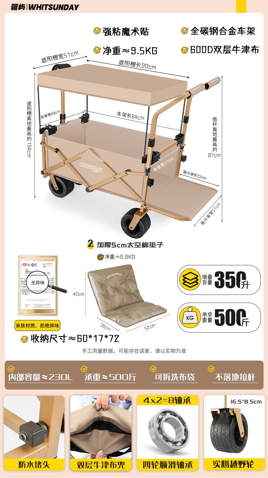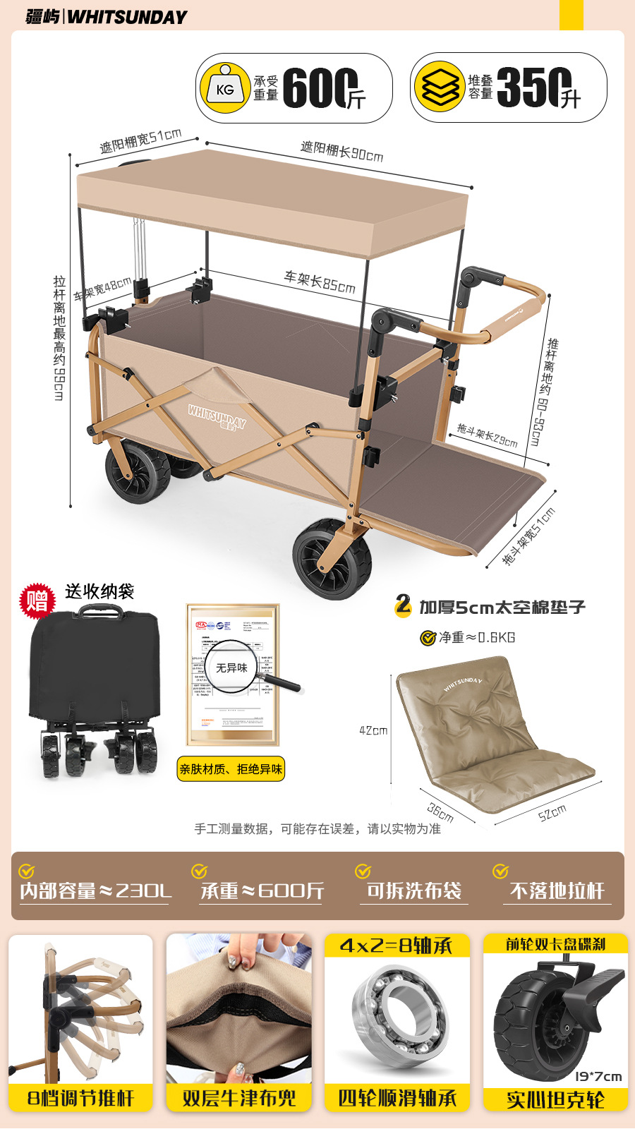 • [카키] 항공기 휠 푸시로드 스타일 드래그 버킷 + 차양 + 차양 + 캠핑카 두꺼운 쿠션