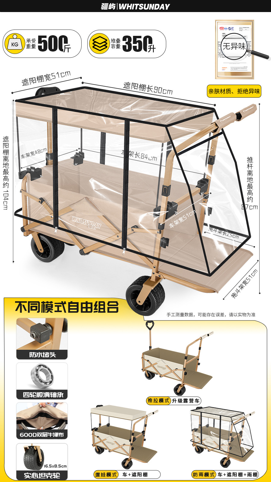 • [카키] 항공기 휠 푸시로드 스타일 드래그 버킷 + 자외선 차단 천막 + 솔리드 오프로드 휠