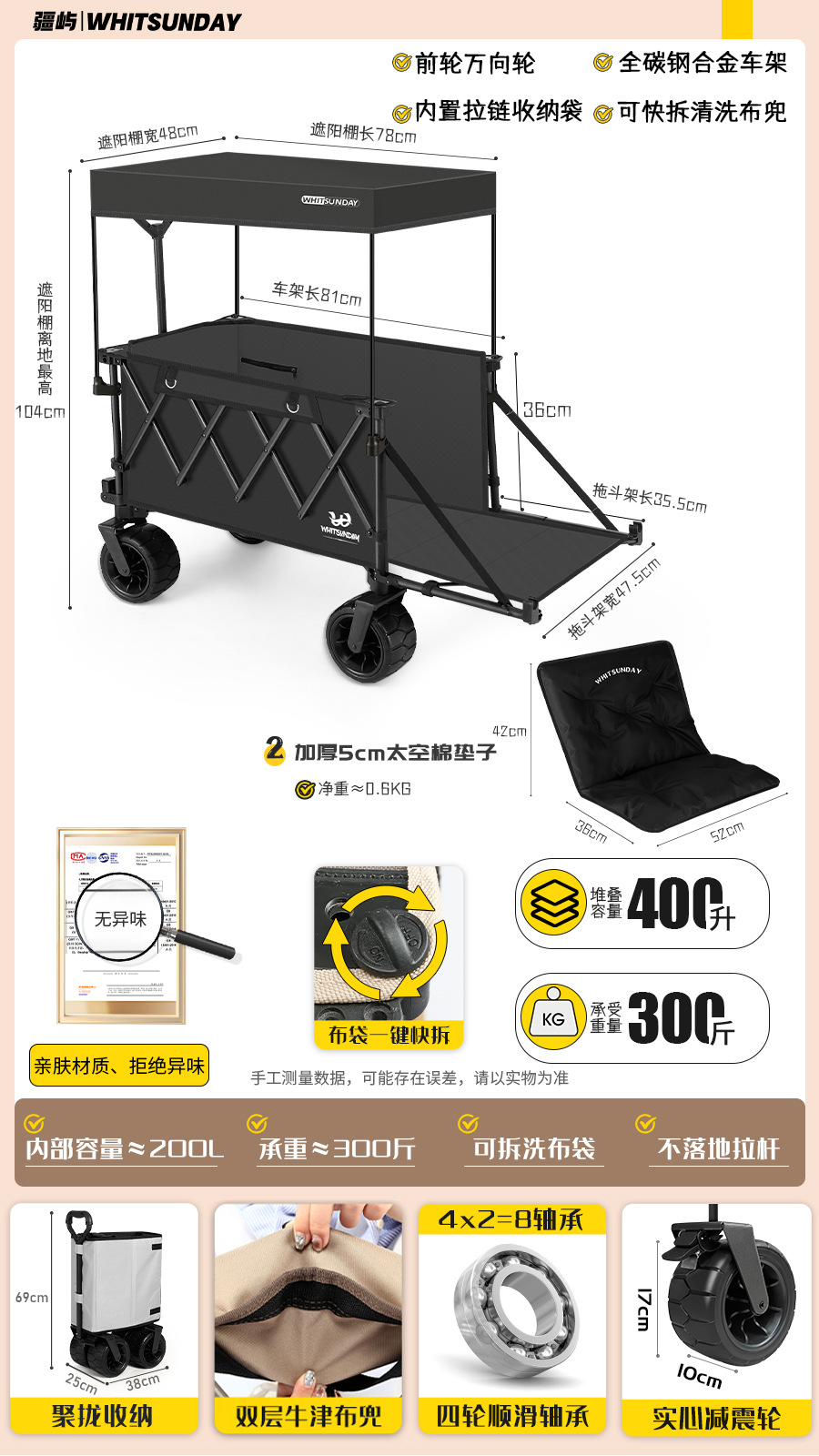• [블랙] 항공기 휠 푸시로드 스타일 드래그 버킷 + 차양 + 차양 + 캠핑카 두꺼운 시트 쿠션
