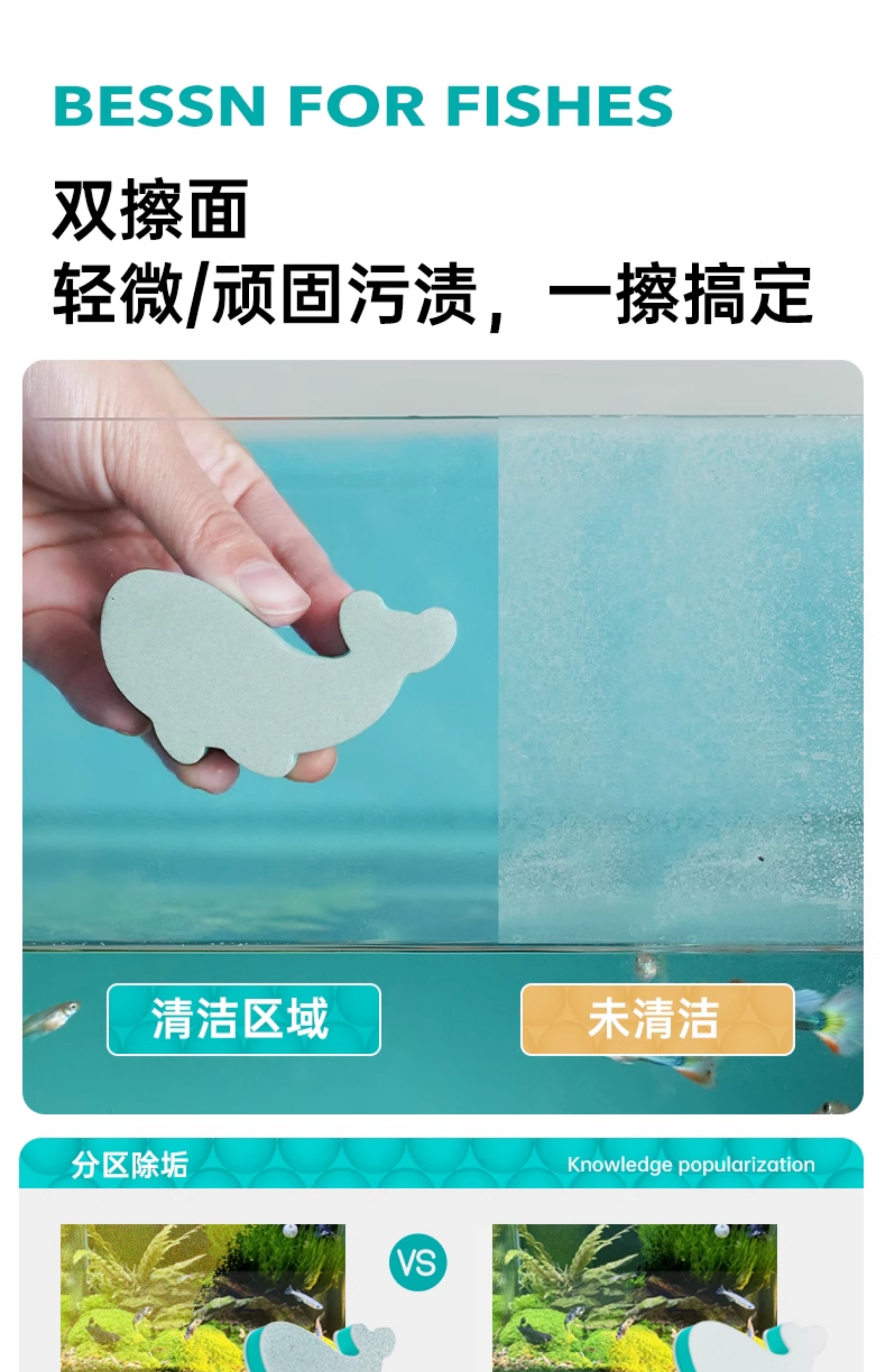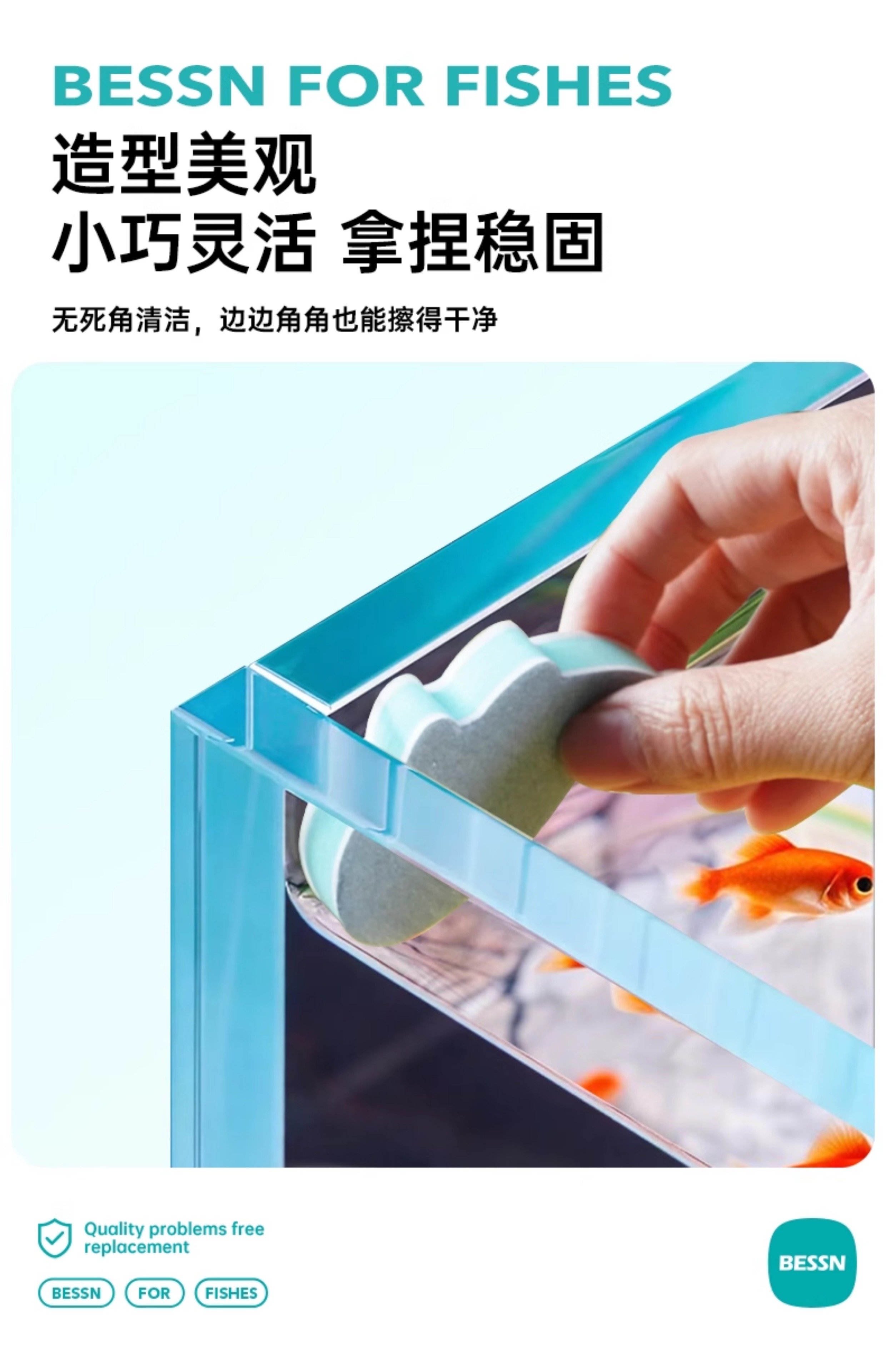 BESSN 수조 스케일 제거 마법의 닦는 내부 벽 유리 물자국 및 물 얼룩을 청소하여 죽은 모서리 없이 수조를 손상시키지 않습니다.