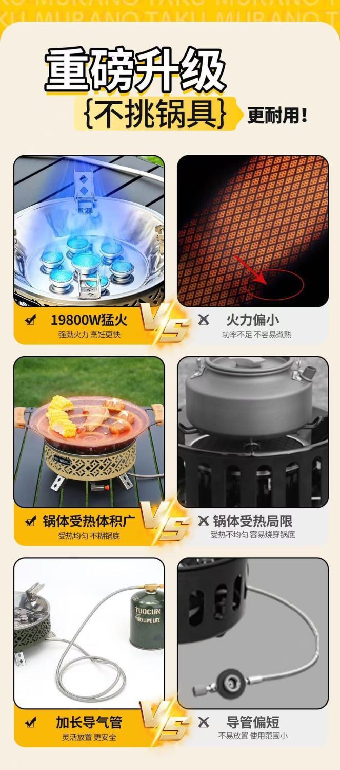 Tuocun 야외 7 헤드 강력한 화로, 야외 캠핑 방폭형 분할 스토브, 차 스토브, 여행 야시장 매점 특별스토어 가기