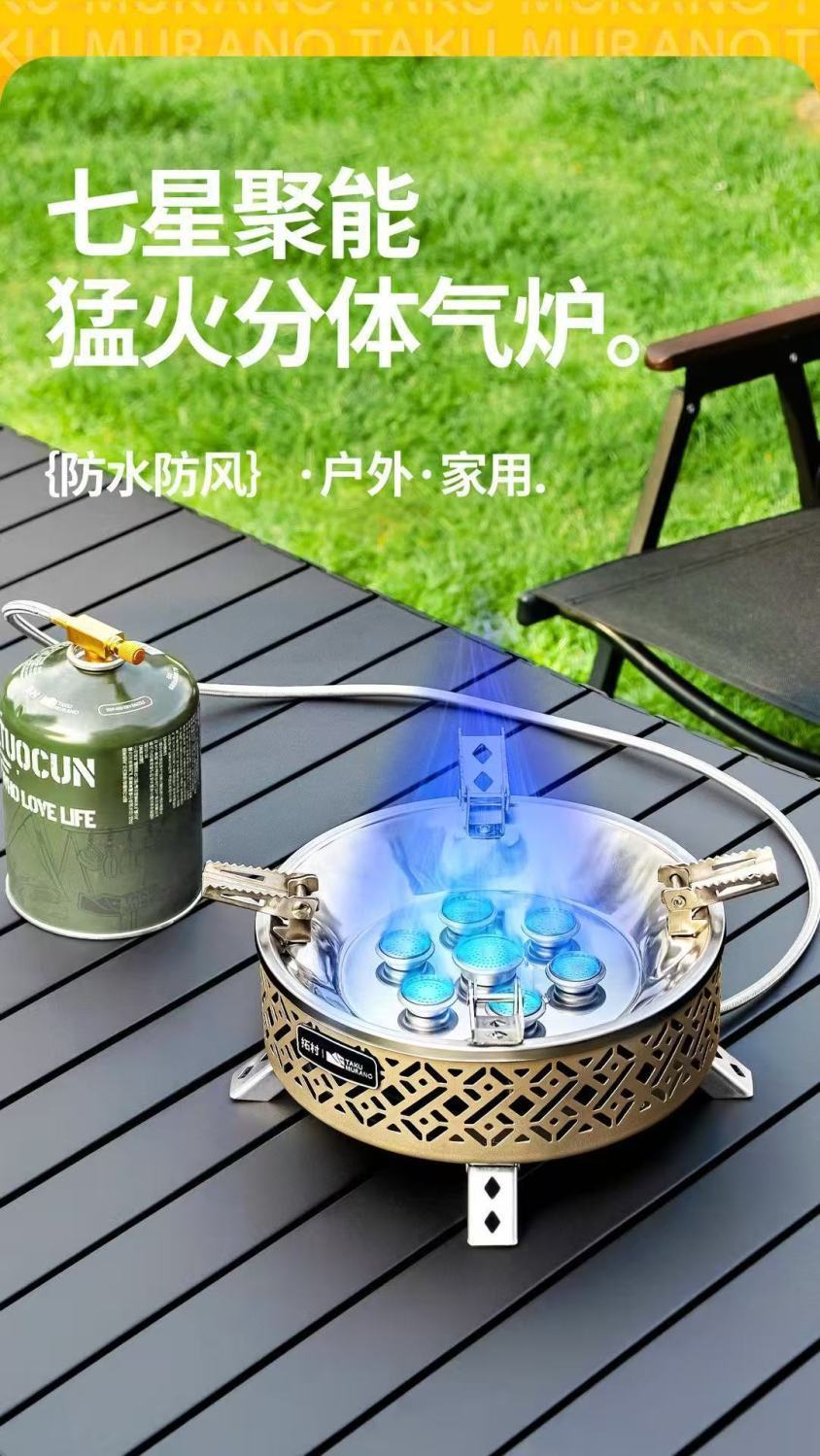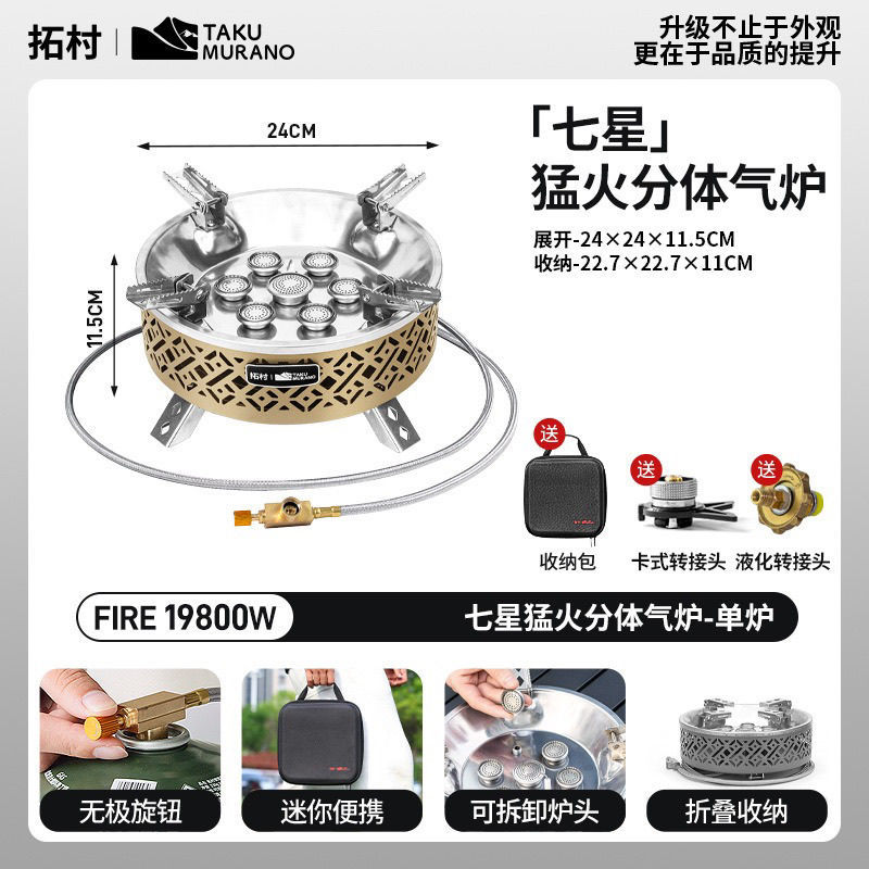 Tuocun 야외 7 헤드 강력한 화로, 야외 캠핑 방폭형 분할 스토브, 차 스토브, 여행 야시장 매점 특별