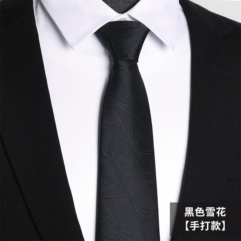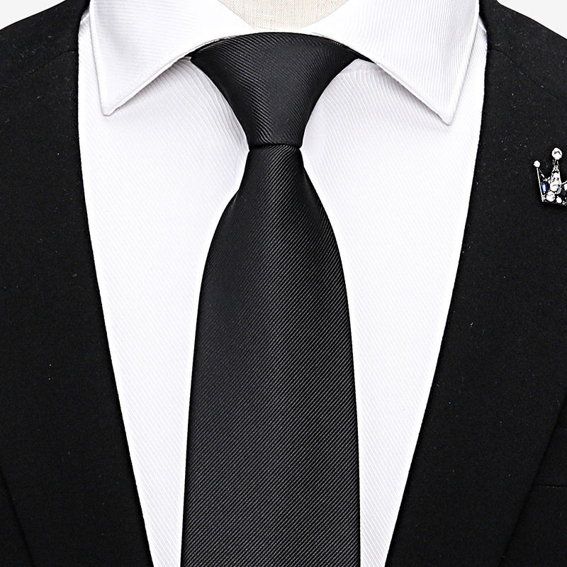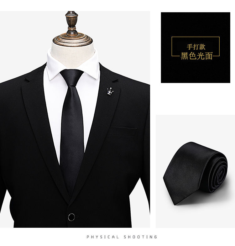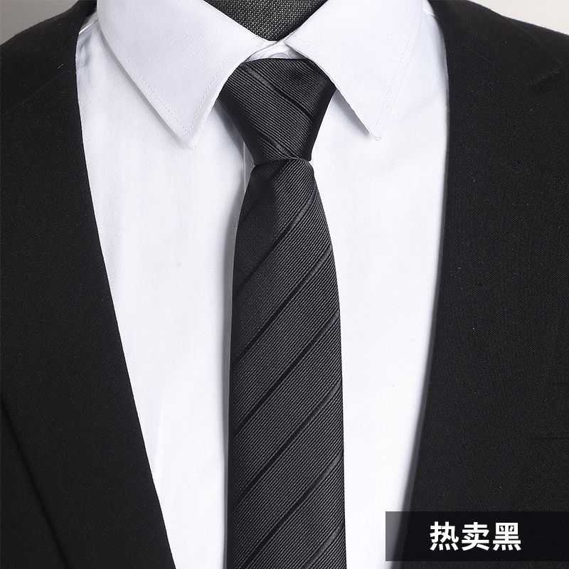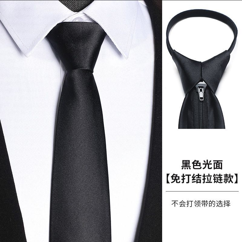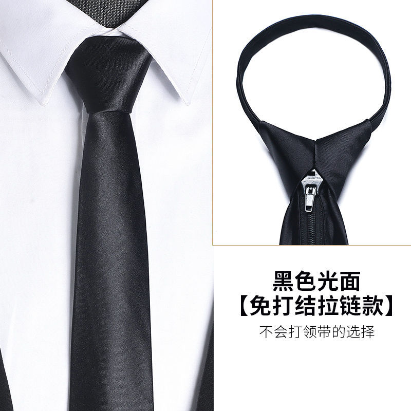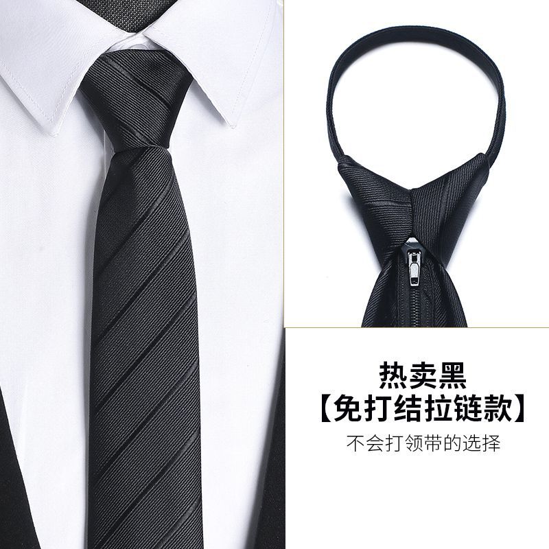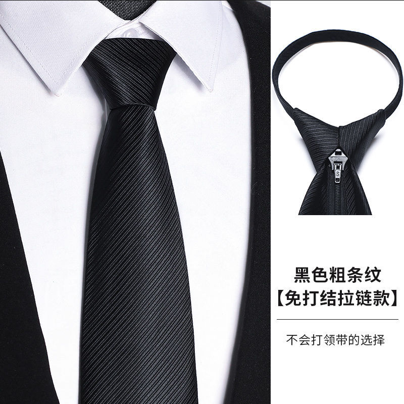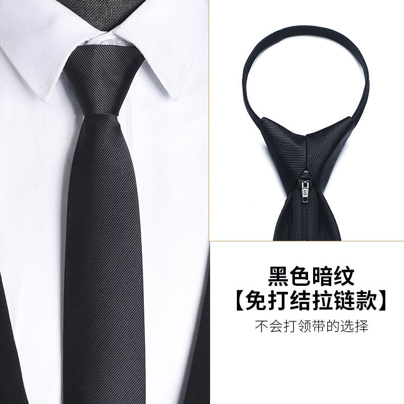 남성용 블랙 넥타이 남성용 정장 한국어 버전 8cm 학생 여성 정장 비즈니스 지퍼 프리 블랙 다크 스트립