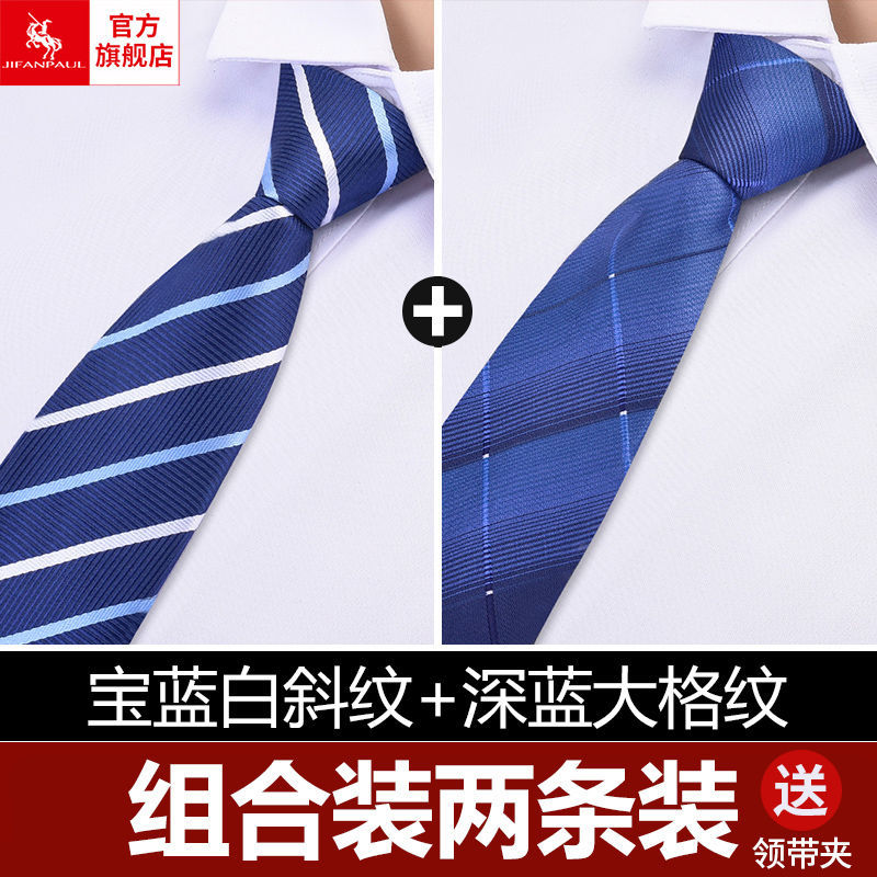 • 로얄 블루 화이트 트윌 + 다크 블루 대형 격자 무늬 8cm 지퍼 스타일(상자 없음)