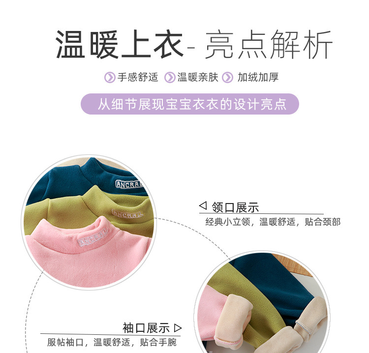 아동용 겨울 벨벳 탑, 남아 및 여아용 미드 하이 칼라 따뜻한 베이스 레이어, 캔디 컬러 의류, 가을 겨울 아동복스토어 가기