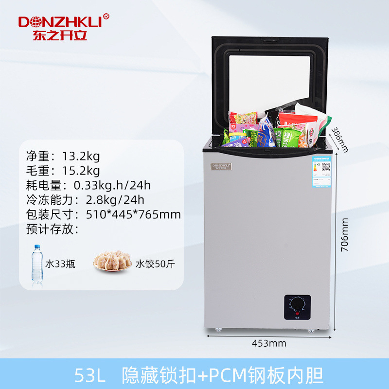 Dongzhikai 소형 냉동고 가정용 냉동 소형 에너지 절약형 임대 기숙사 수평 냉장 냉동 자동차 냉장고스토어 가기