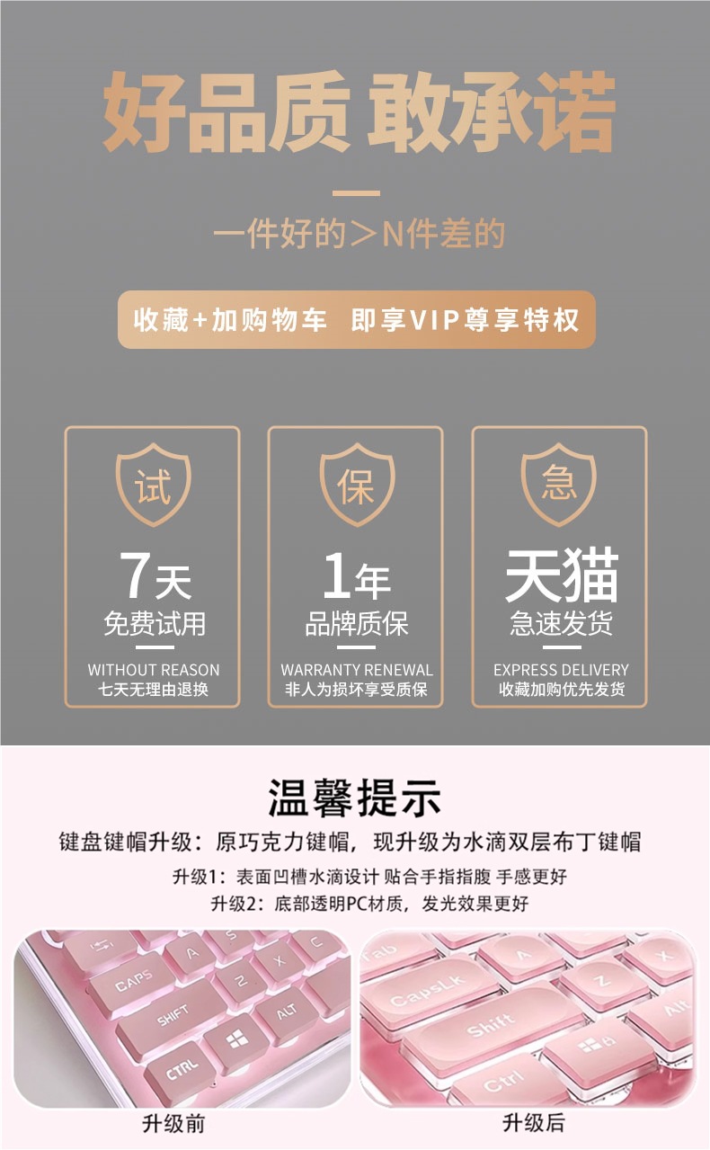 • 기계적인 느낌 - 유선 세트 - 핑크색 백색광 + 마우스 [버튼 음소거]
