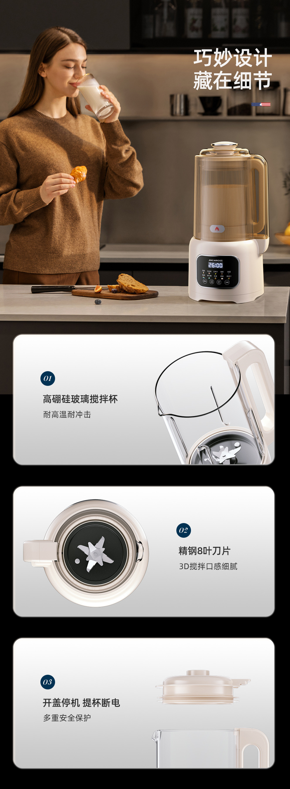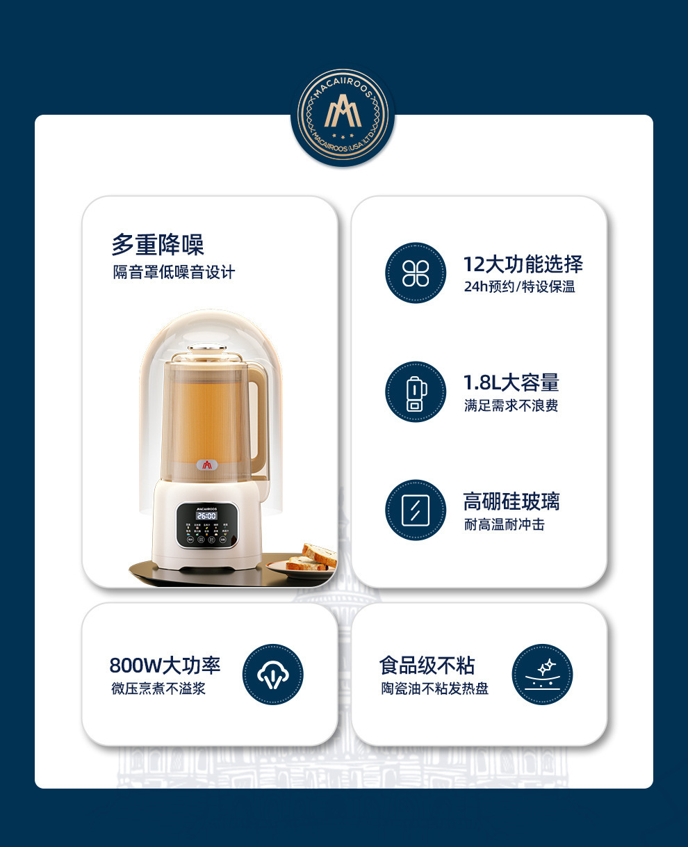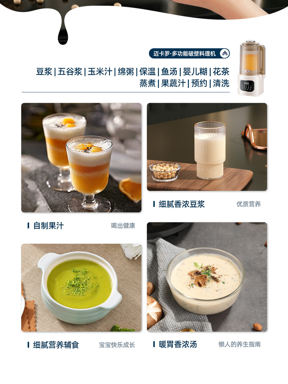 Mikaro MC-PB182E 벽 파괴 두유 기계 가정용 가열 두유 기계 다기능 요리 기계 믹서