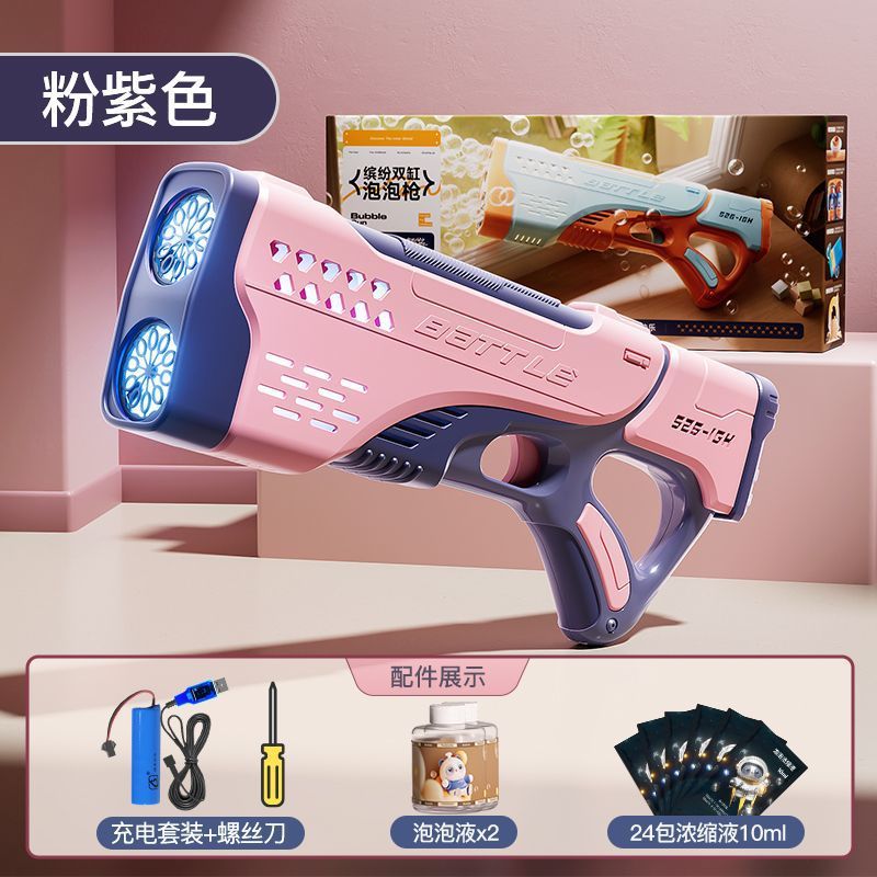 • 카키핑크 더블 실린더 버블건 [충전식 버전] - 버블수 1병 무료