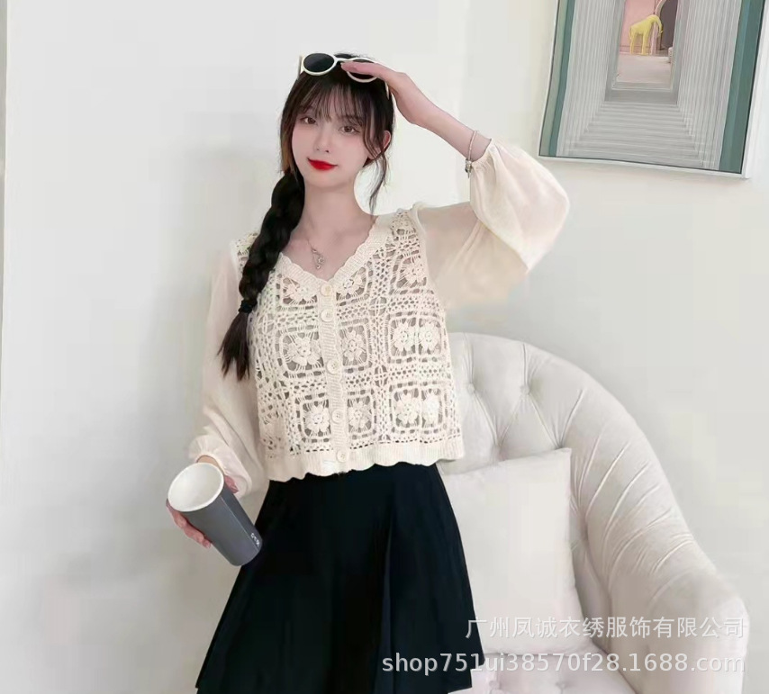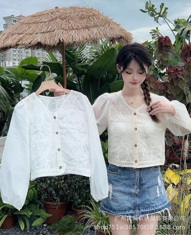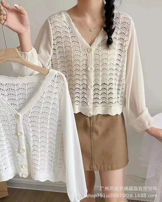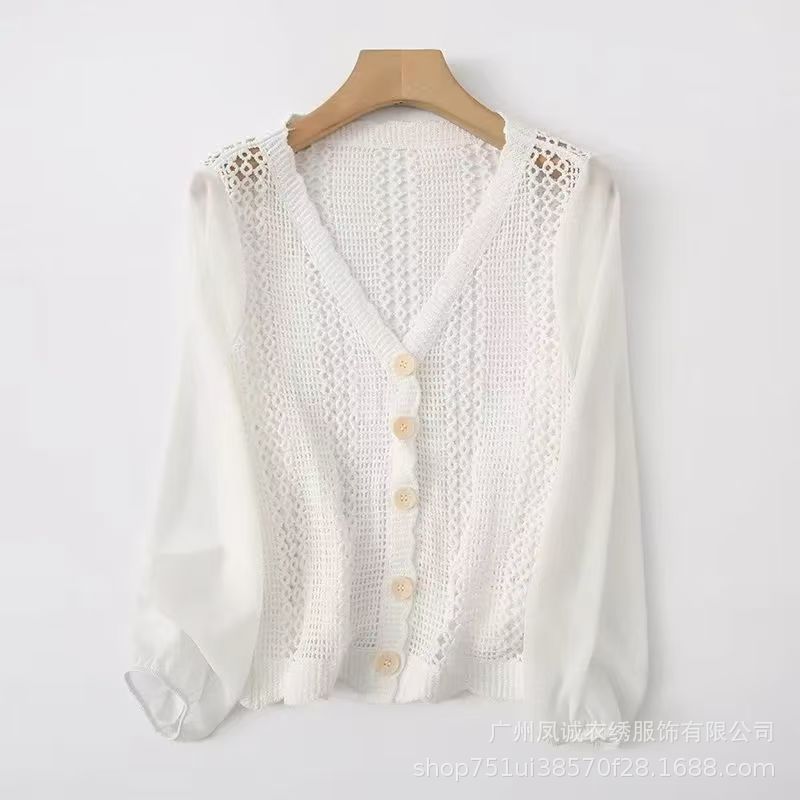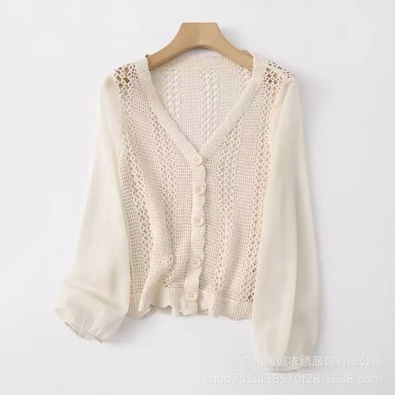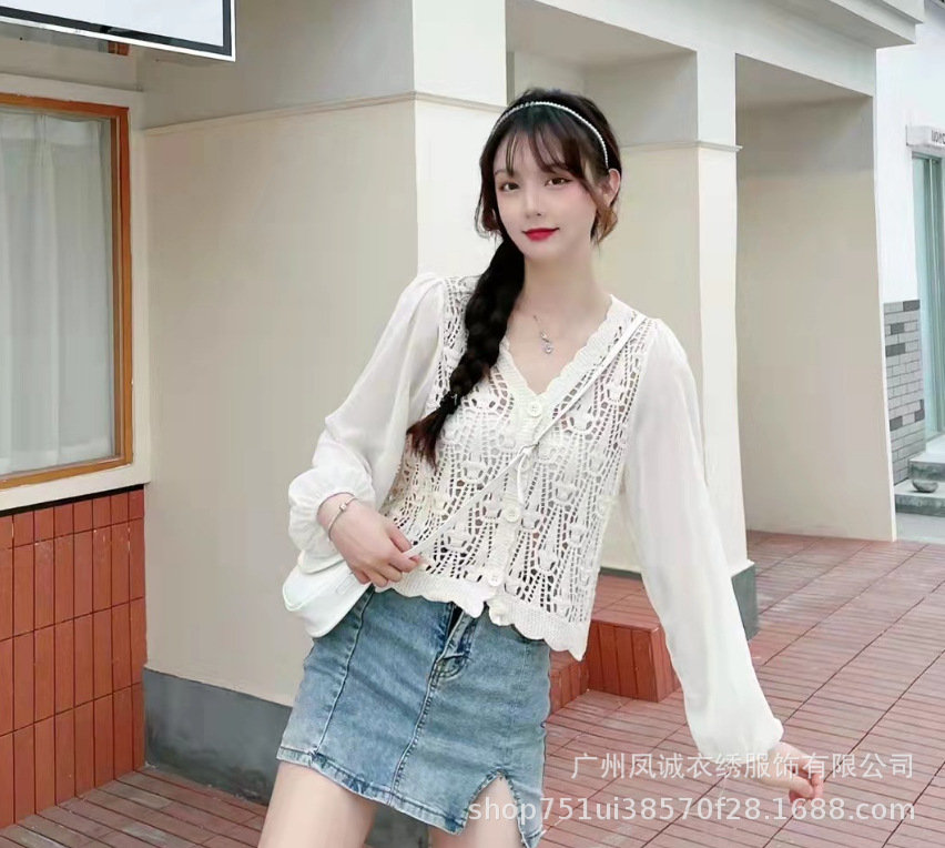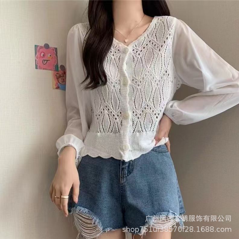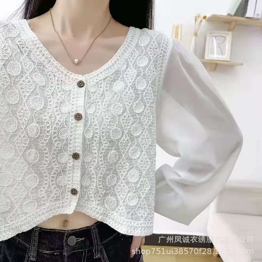 에스닉 스타일 여름 새로운 스플 라이스 v 넥 쉬폰 긴 소매 레이스 셔츠 니트 랜턴 슬리브 얇은 탑스토어 가기