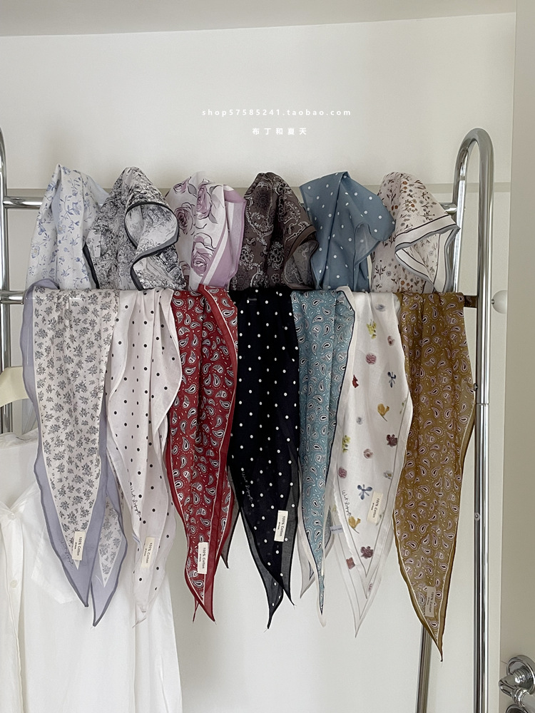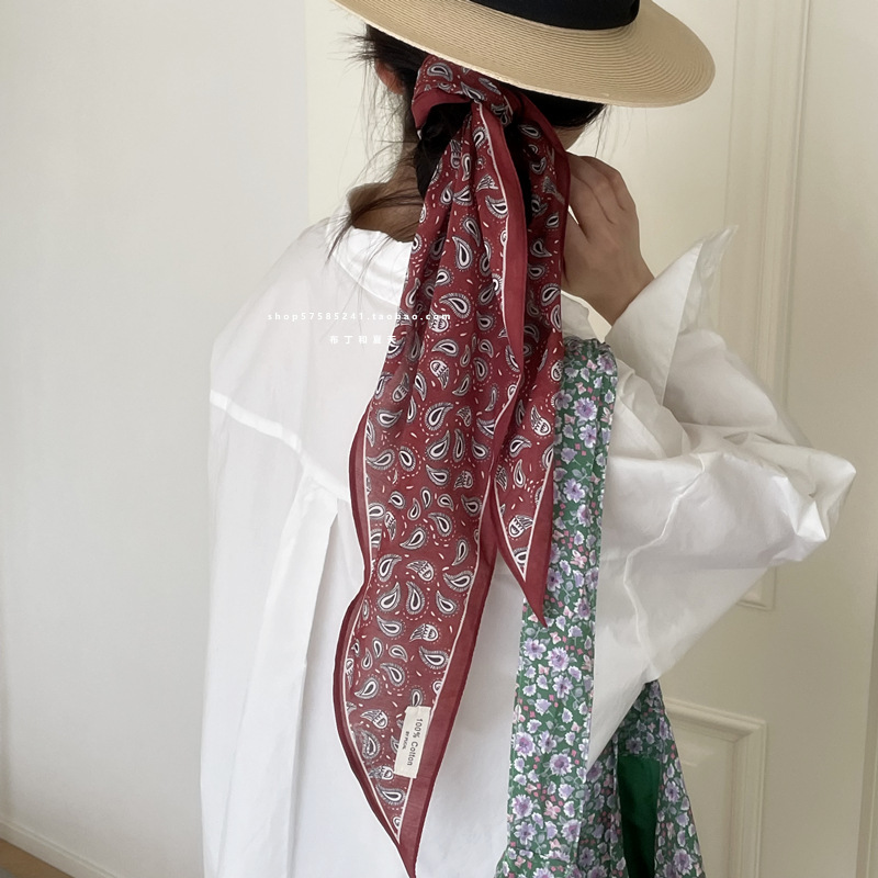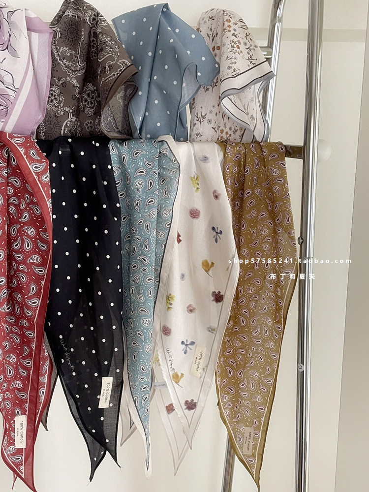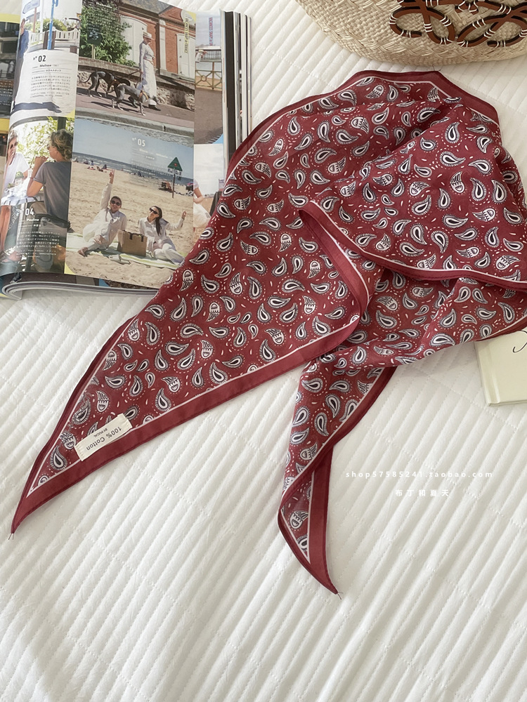 패셔너블한 캐슈 마름모 실크 스카프 여성용 순면 삼각 스카프 일본식 봄 여름 스카프 한국 면 사각 스카프