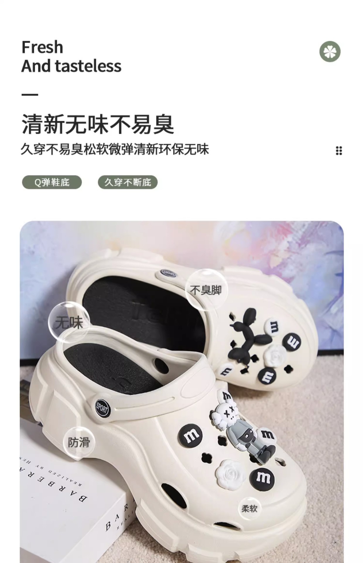 여성을위한 슈퍼 두꺼운 인기 땀이 많은 개 구멍 신발 2023 두꺼운 밑창 비치 신발 인터넷 연예인 높이 증가 샌들 및 슬리퍼 도매스토어 가기