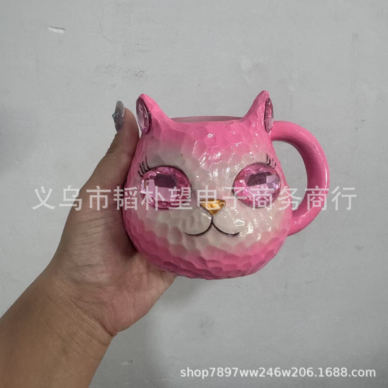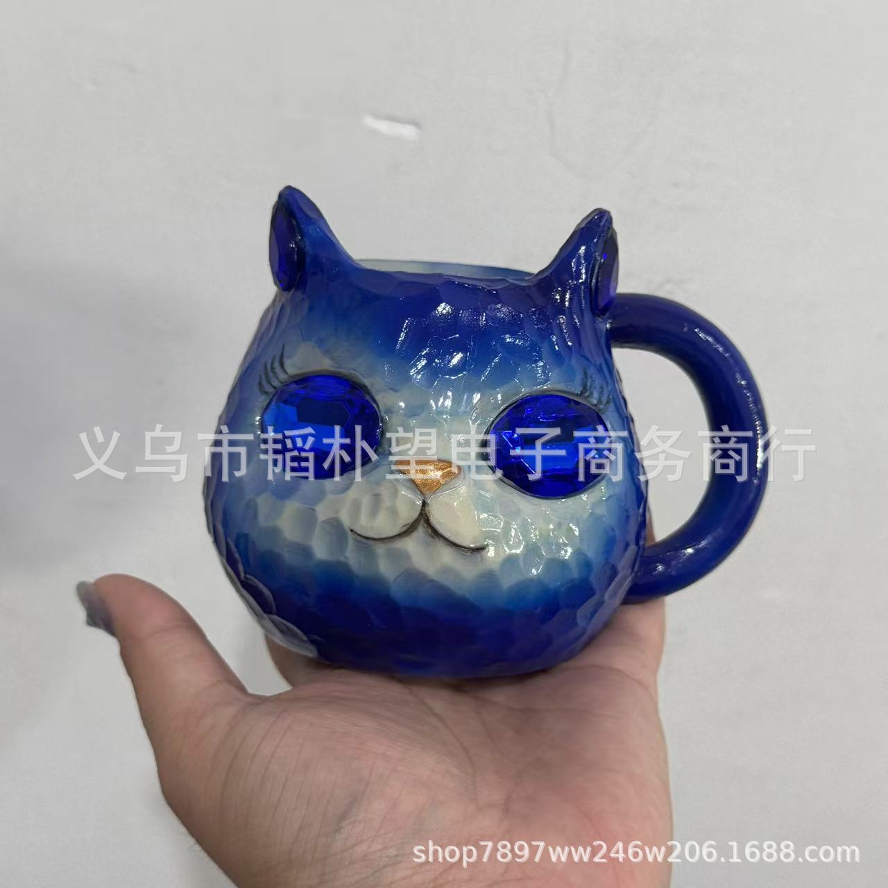 크로스보더 크리스탈 지오드 고양이 머그잔 크리스탈 어스 고양이 컵 수지 공예 디자인 고양이 마법