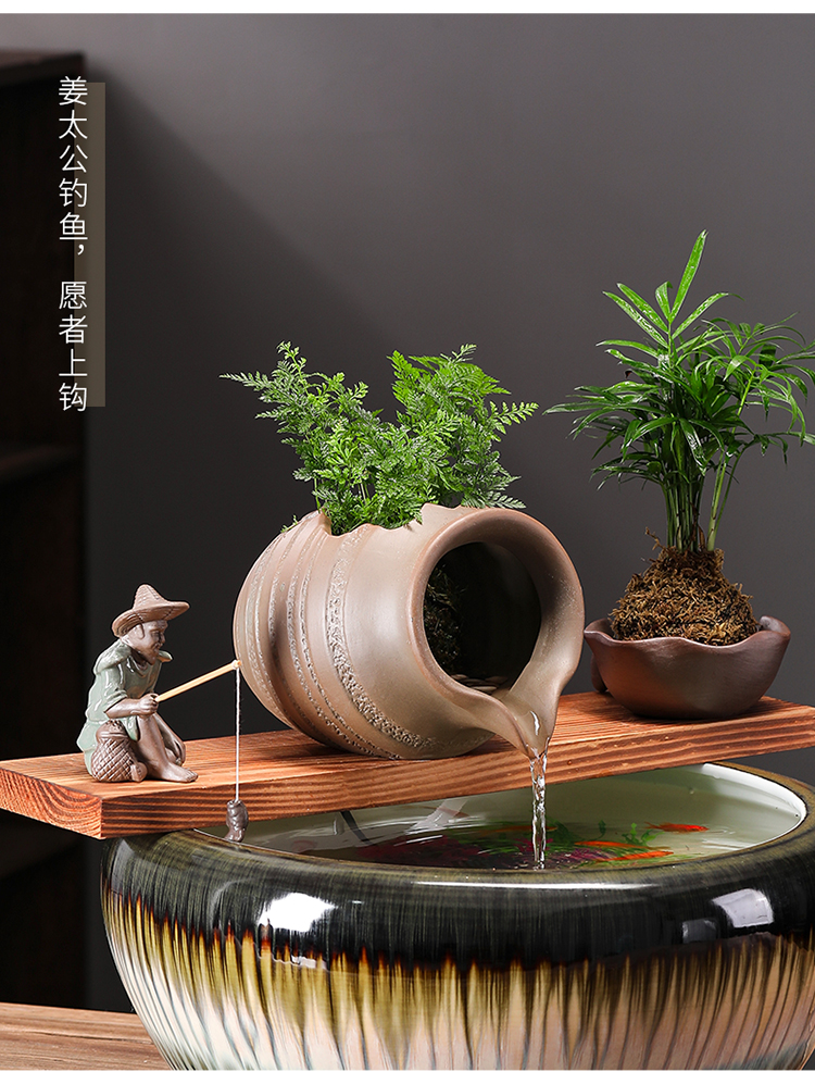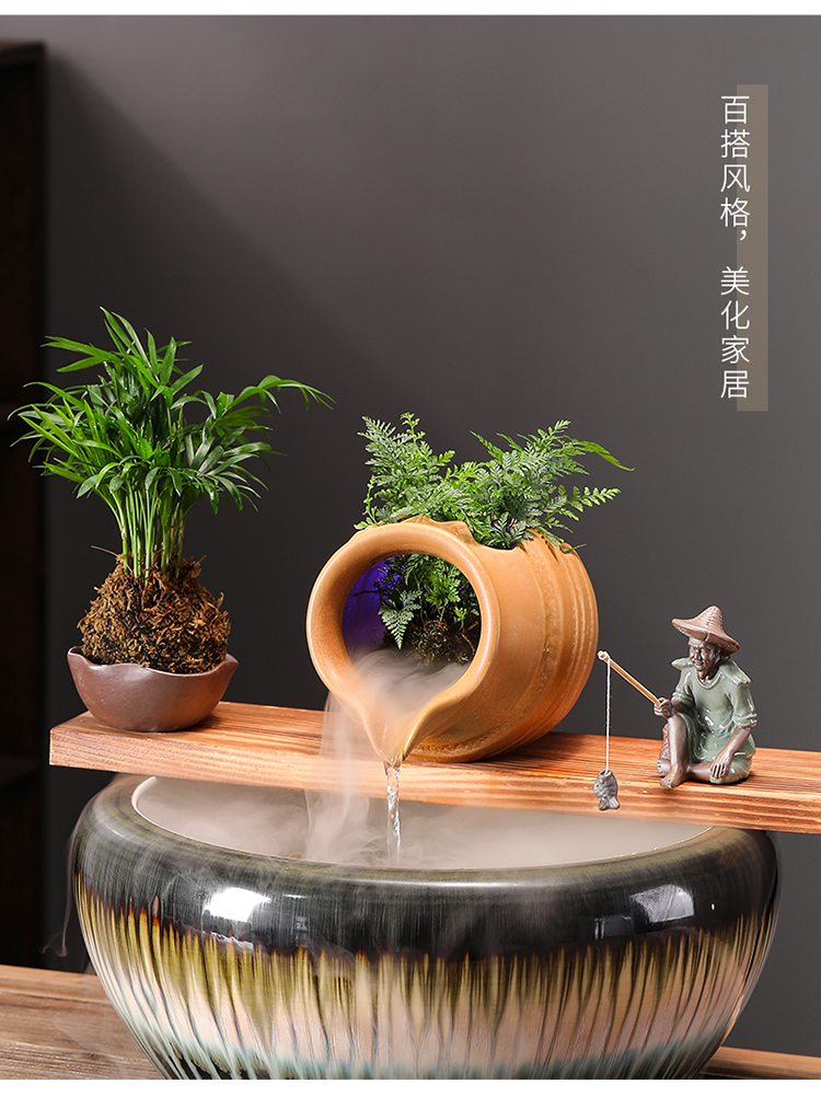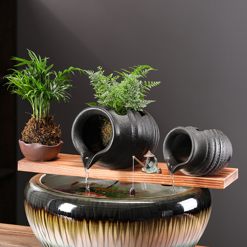 ✅ 조경용 어항, 흐르는 물, 도자기 항아리, 순환 산소 공급, 고대 방식의 어류 양식, 여과 폭포, 흐르는 물 장식, 항아리 액세서리 세트