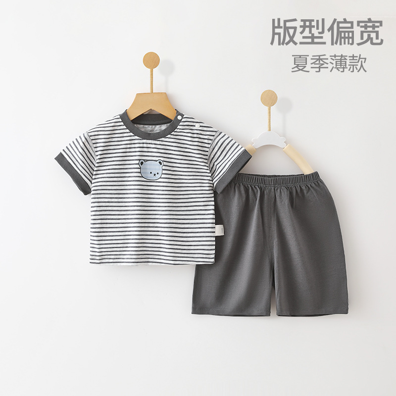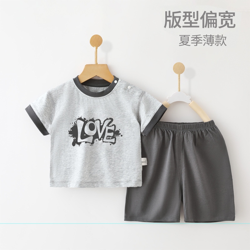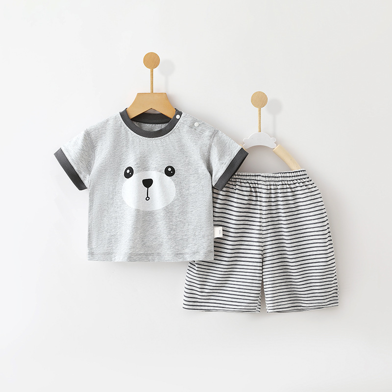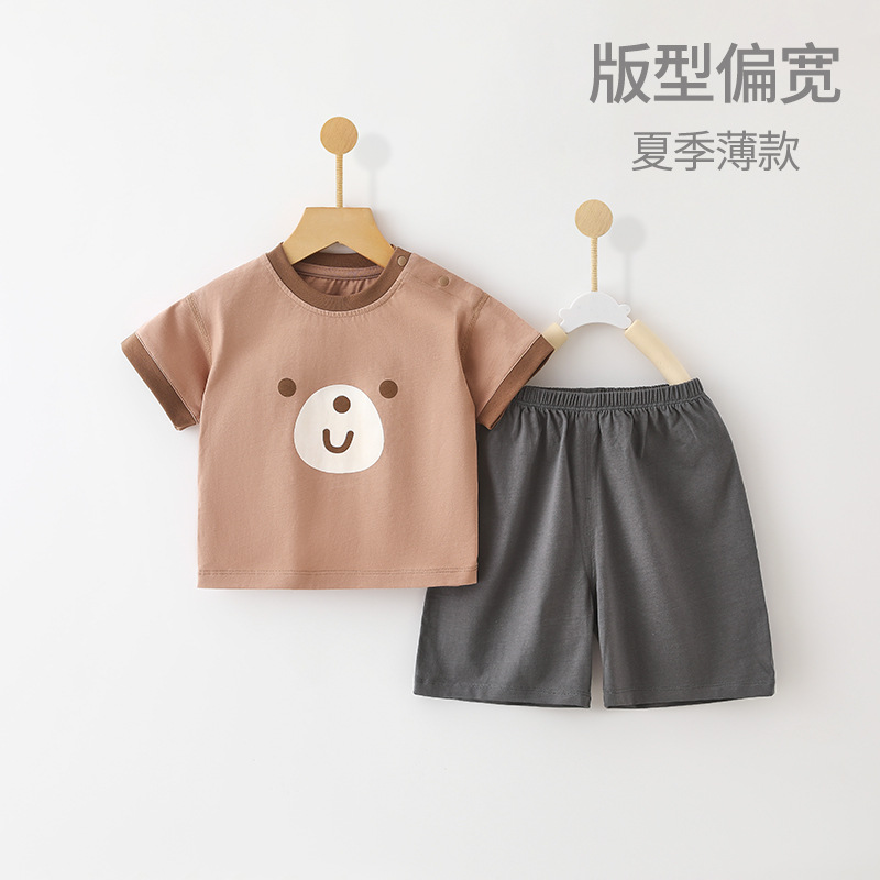 어린이 반팔 세트 소년의 여름 코튼 반팔 티셔츠 오픈 크로 치 반바지 0-3 세 아기 옷 아기 캐주얼스토어 가기