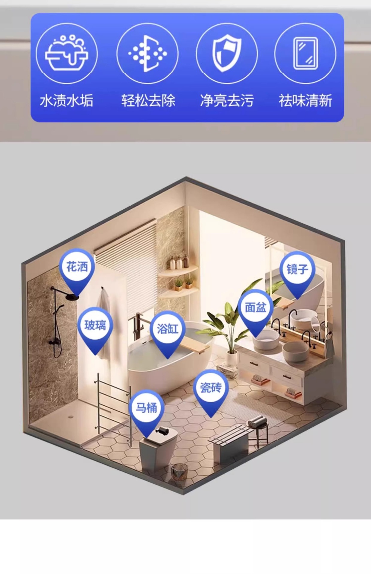 • 스프레이 헤드 포함 욕실 전용 세정제 1병 (총 500g)
