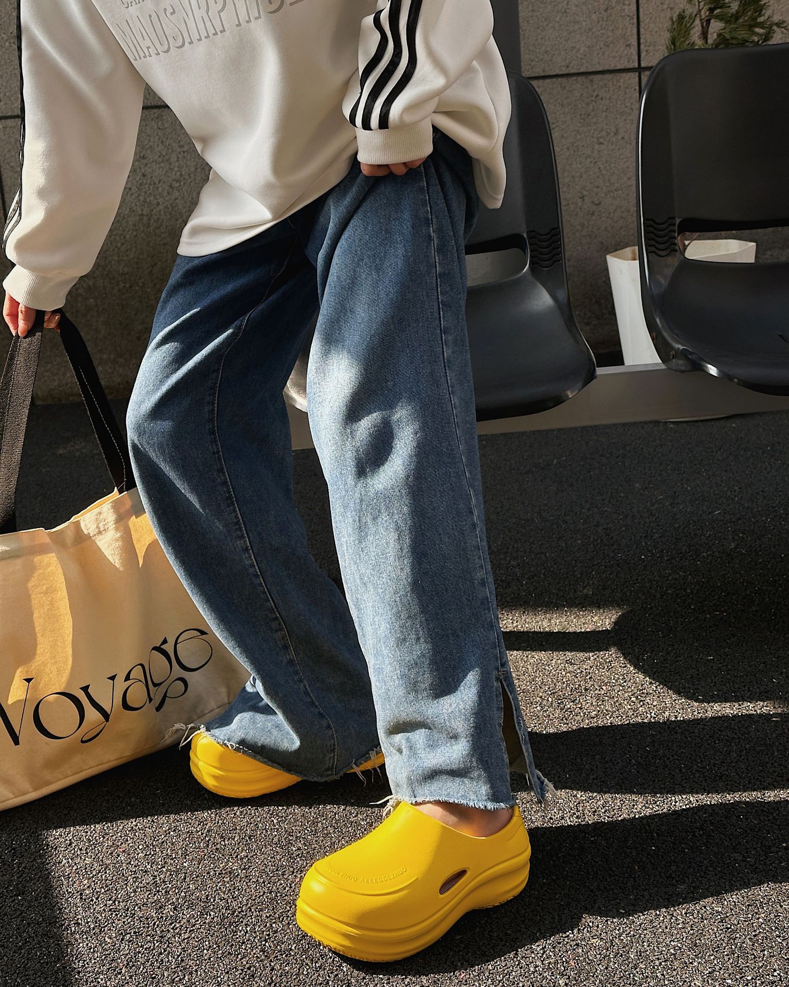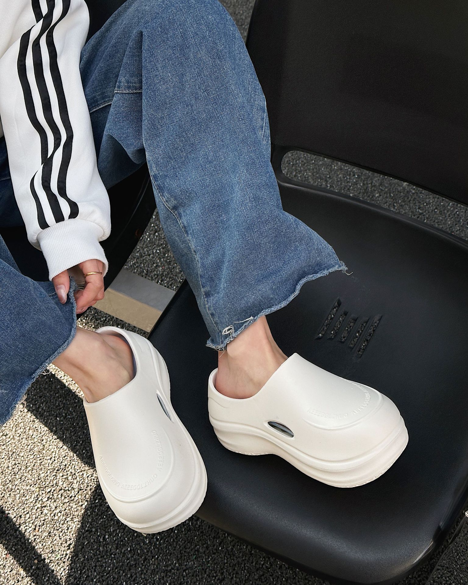 봄여름 핫모델~EVA 방수 및 키높이 슬립온 여성용 두꺼운 밑창 나막신 셰프 슈즈 발가락 반슬리퍼스토어 가기
