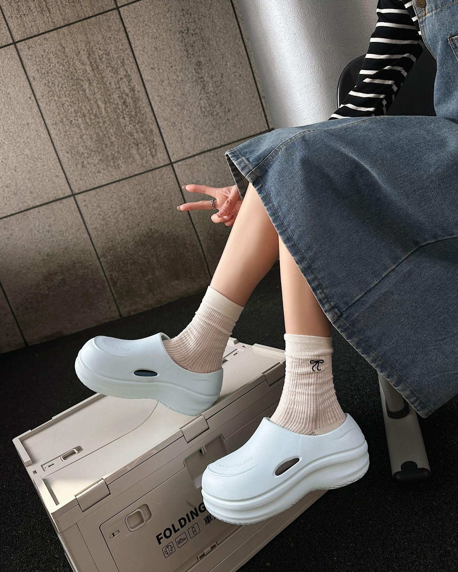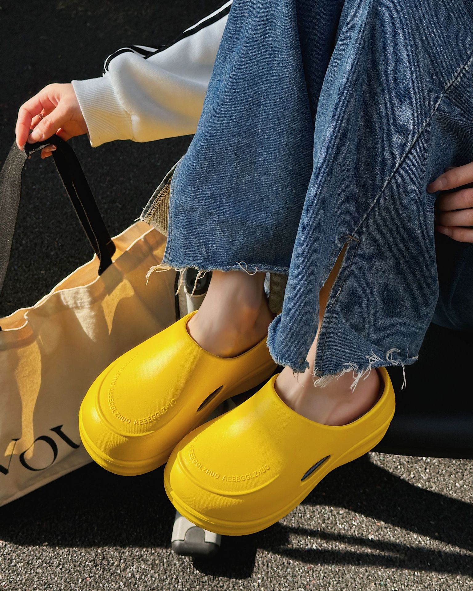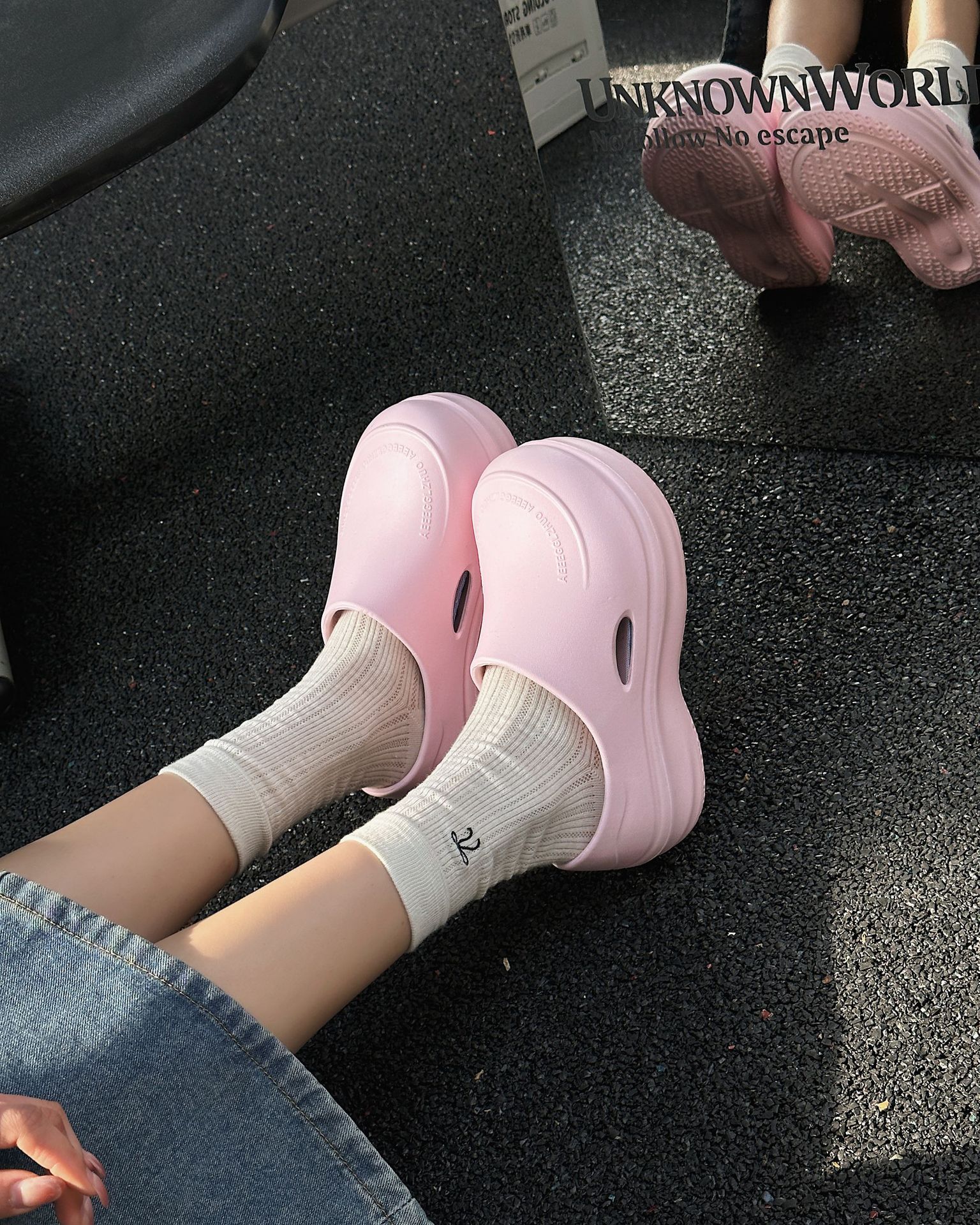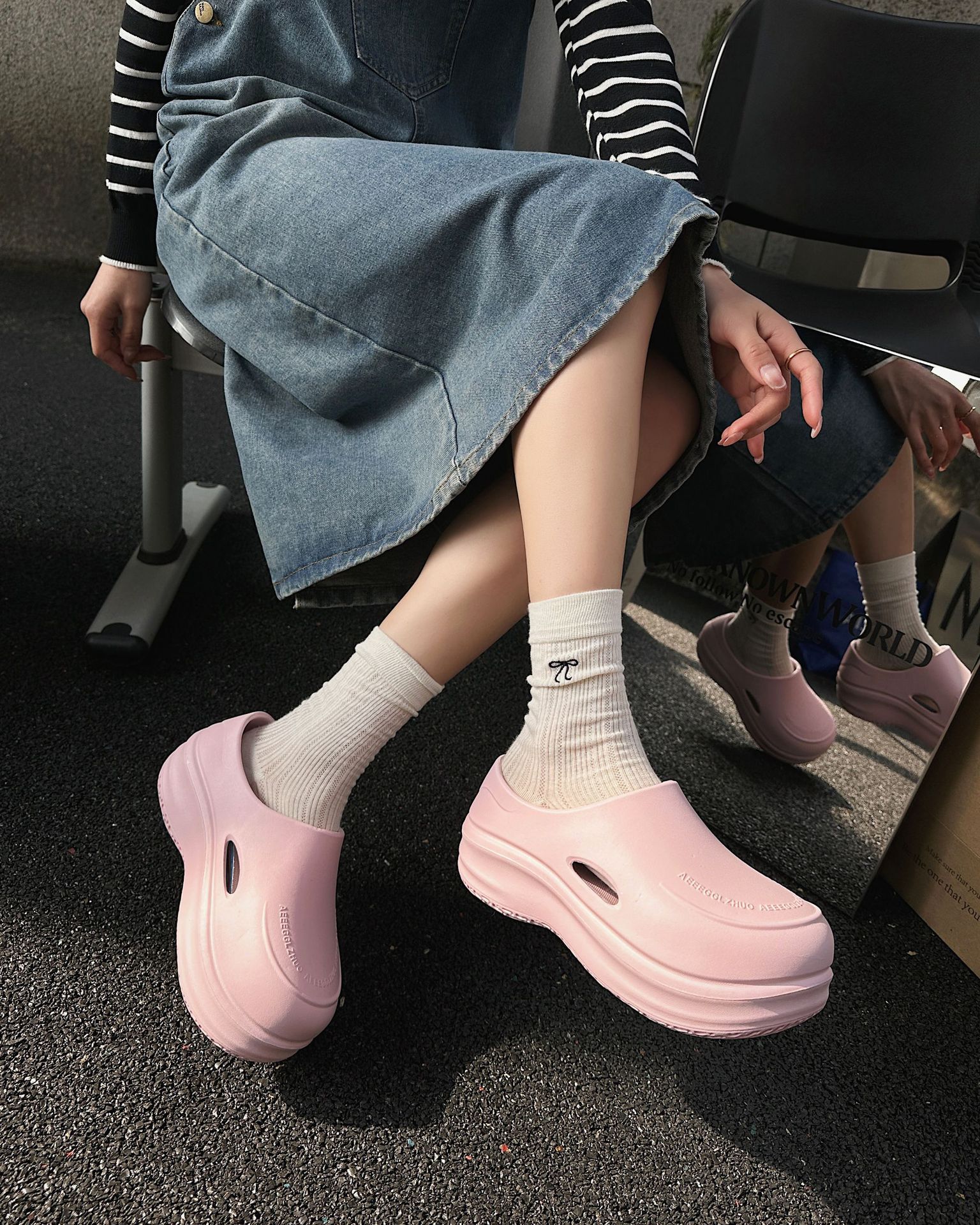 봄여름 핫모델~EVA 방수 및 키높이 슬립온 여성용 두꺼운 밑창 나막신 셰프 슈즈 발가락 반슬리퍼