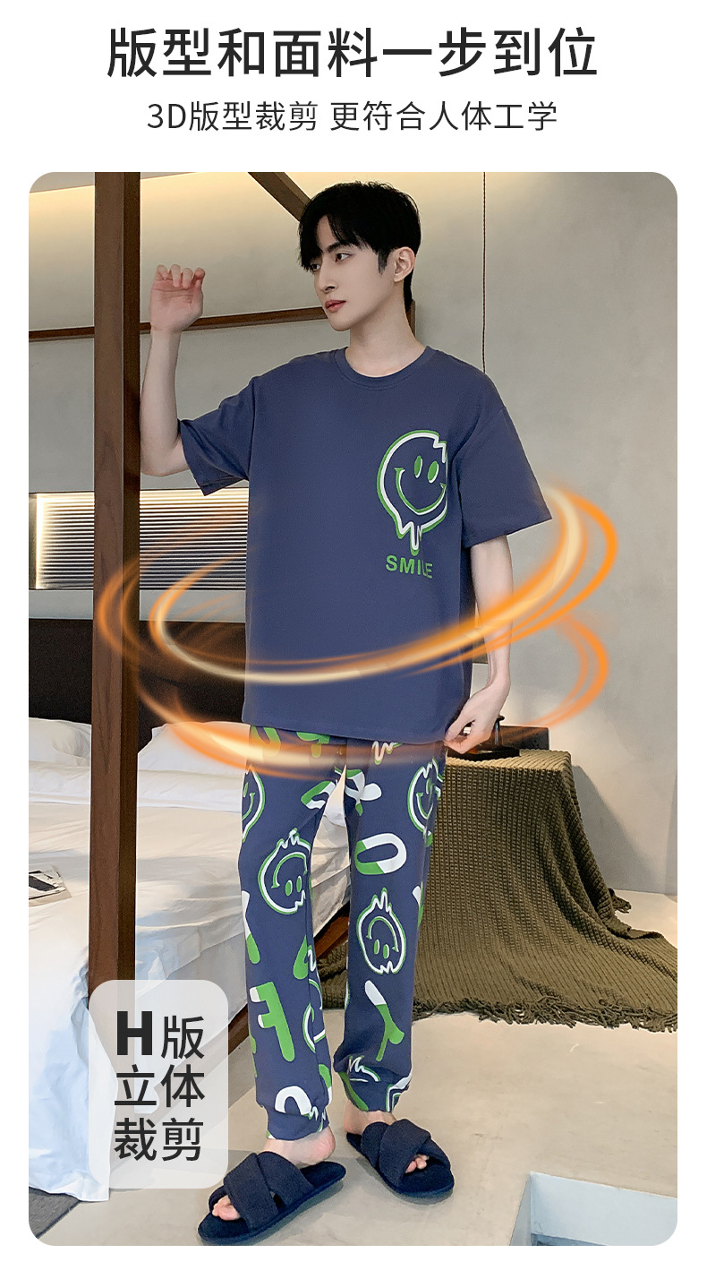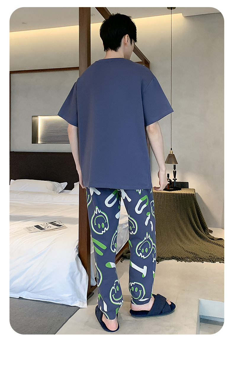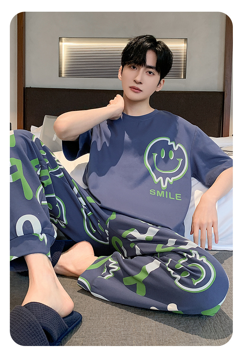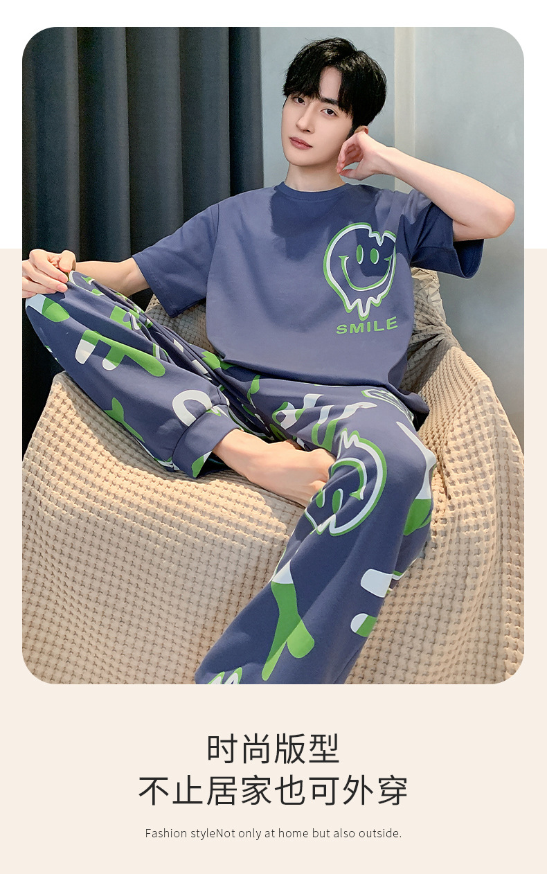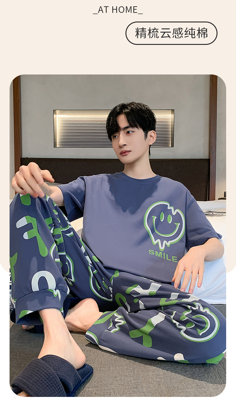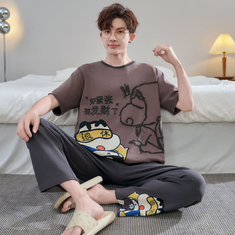 남성용 잠옷 2025 새로운 여름 순수 코튼 반팔 바지 얇은 가을 대형 만화 홈웨어 세트스토어 가기
