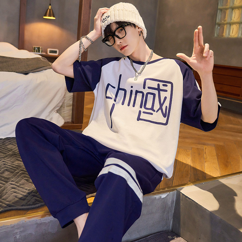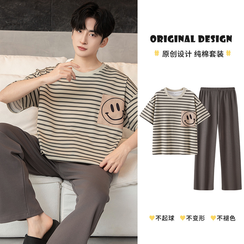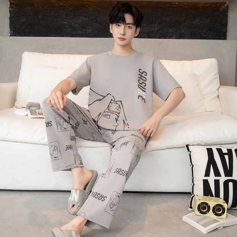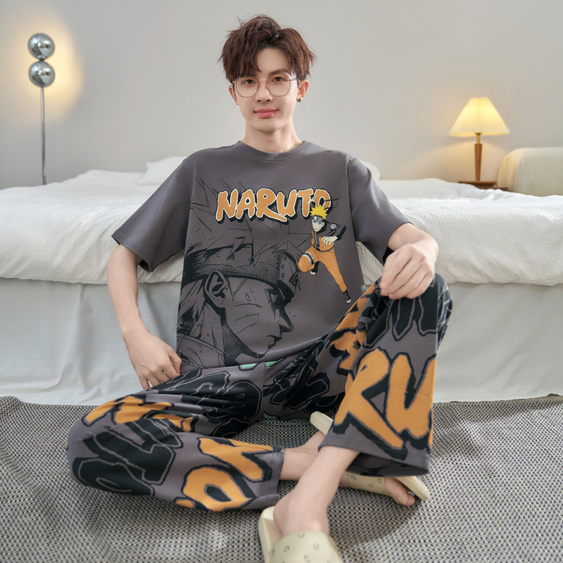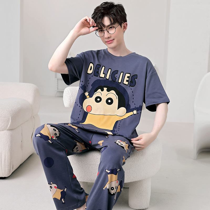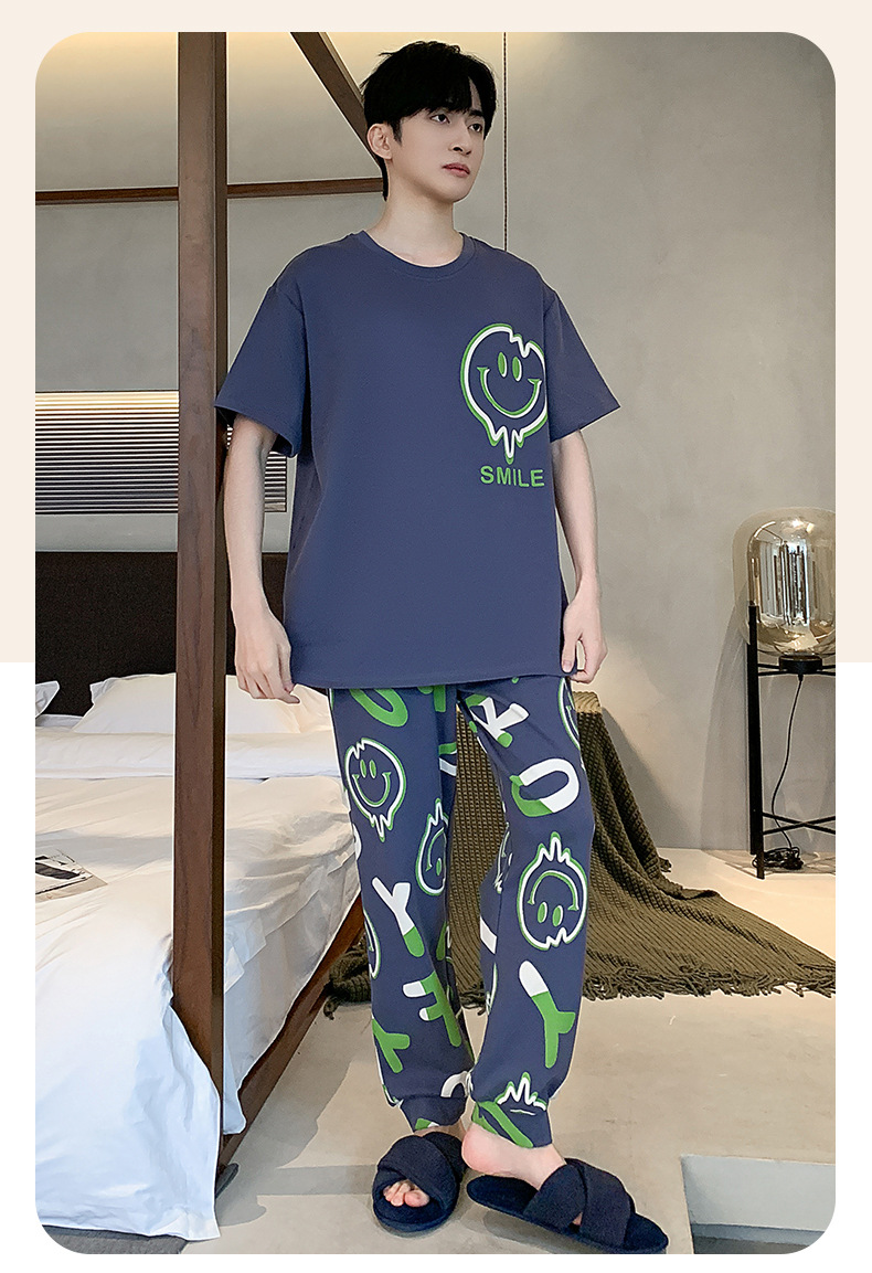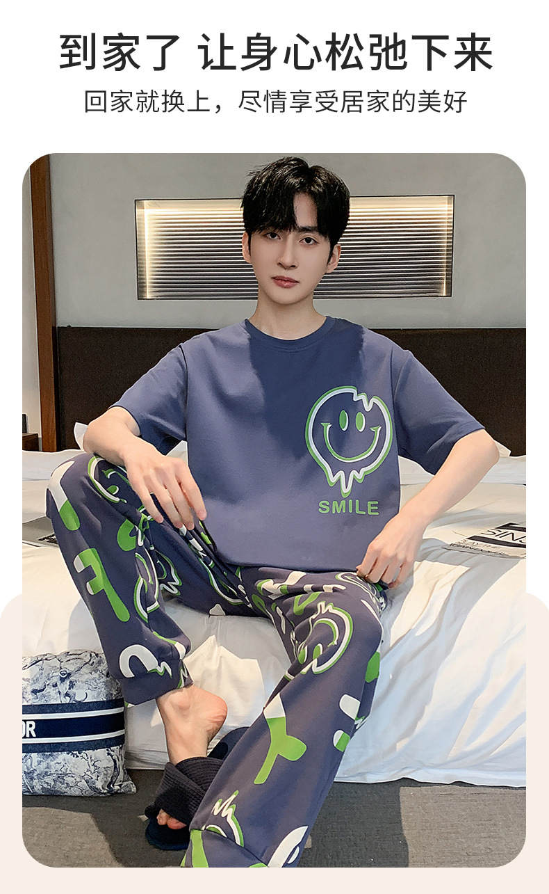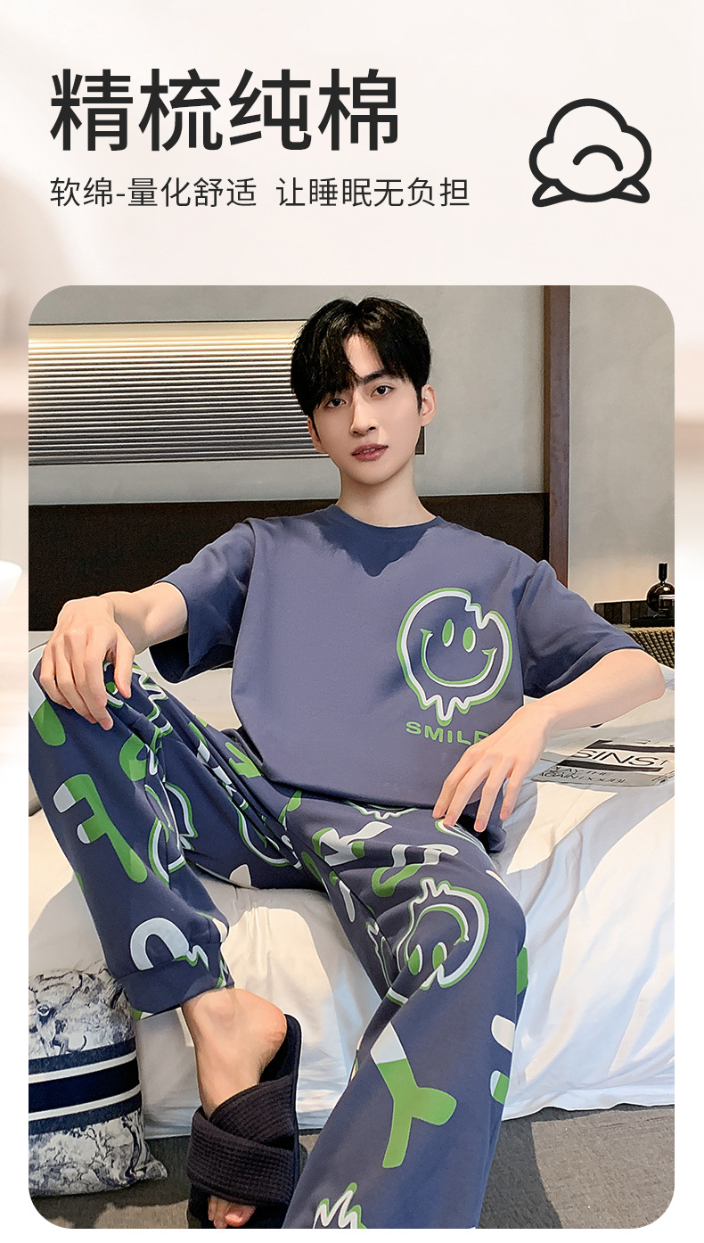 남성용 잠옷 2025 새로운 여름 순수 코튼 반팔 바지 얇은 가을 대형 만화 홈웨어 세트스토어 가기