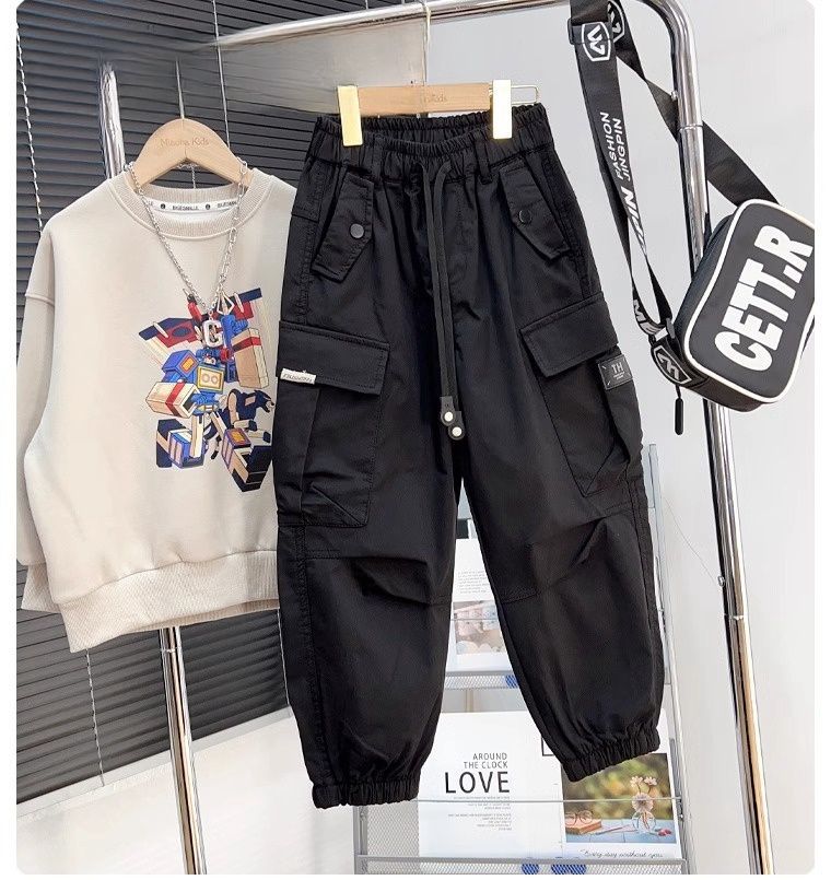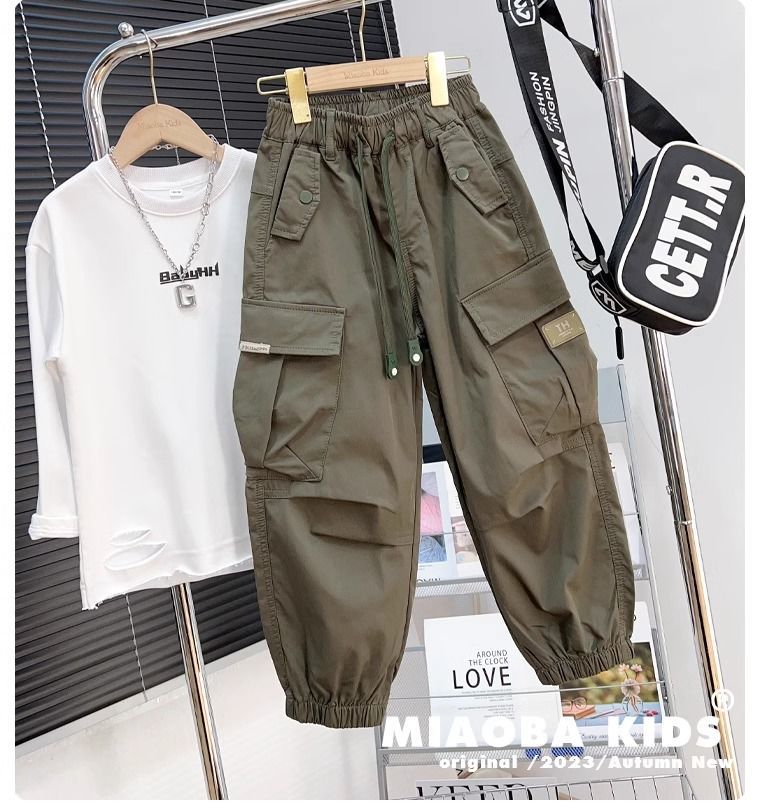 아동 작업복 바지 봄 가을용 중대형 남아용 다용도 캐주얼 바지 루즈핏 조거 팬츠 스포츠 스타일 패셔너블스토어 가기