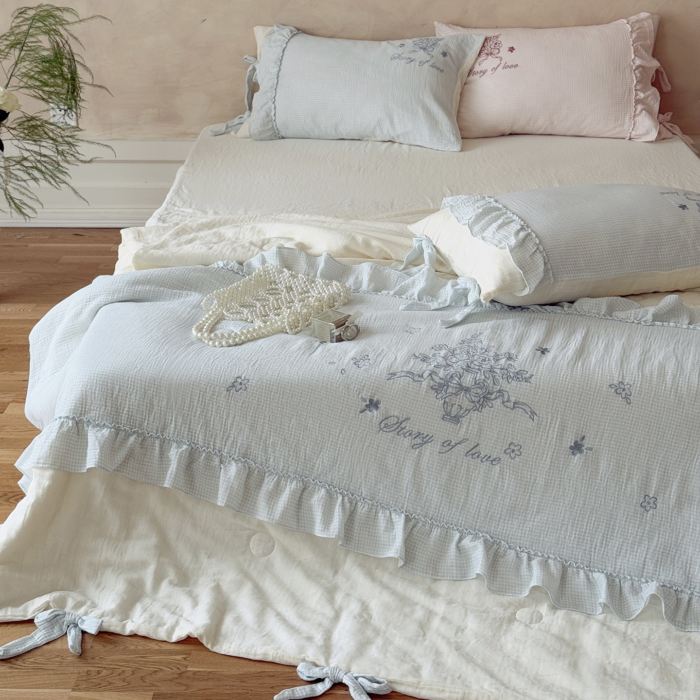 프렌치 코튼 더블 레이어 원사 한국식 4피스 순면 여름 시원한 이불 작은 신선한 레이스 자수 소녀 하트 침구스토어 가기