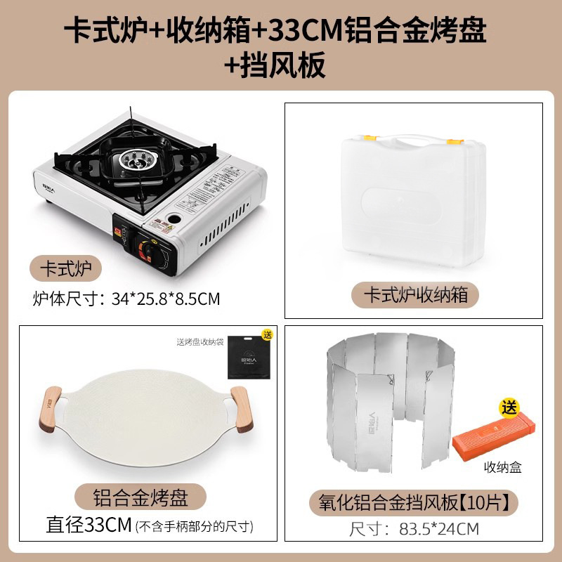 • [화이트] 카세트 스토브(수납함 포함) + 앞유리 + 29 알루미늄 합금 베이킹 팬(수납 가방 포함)