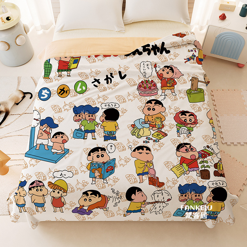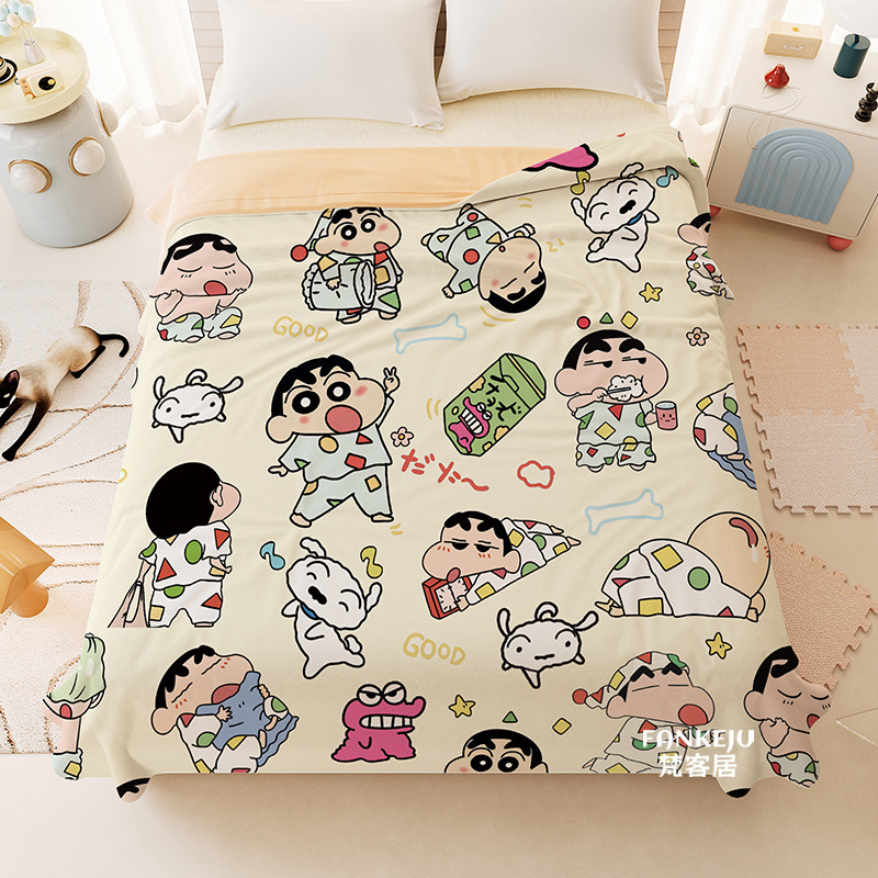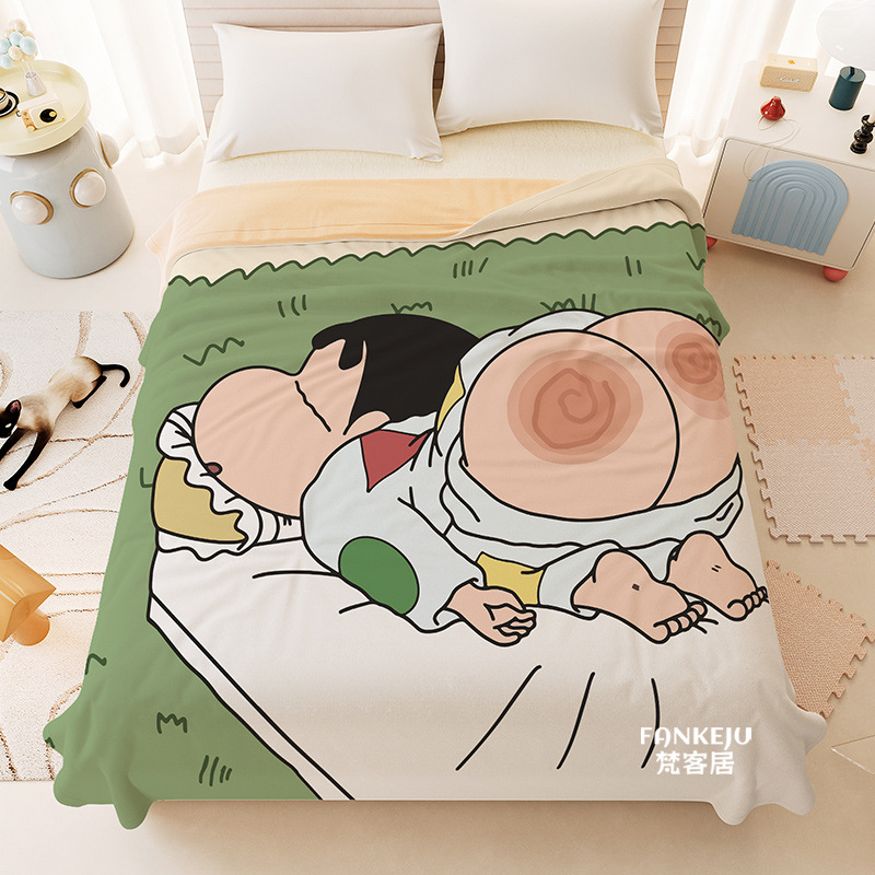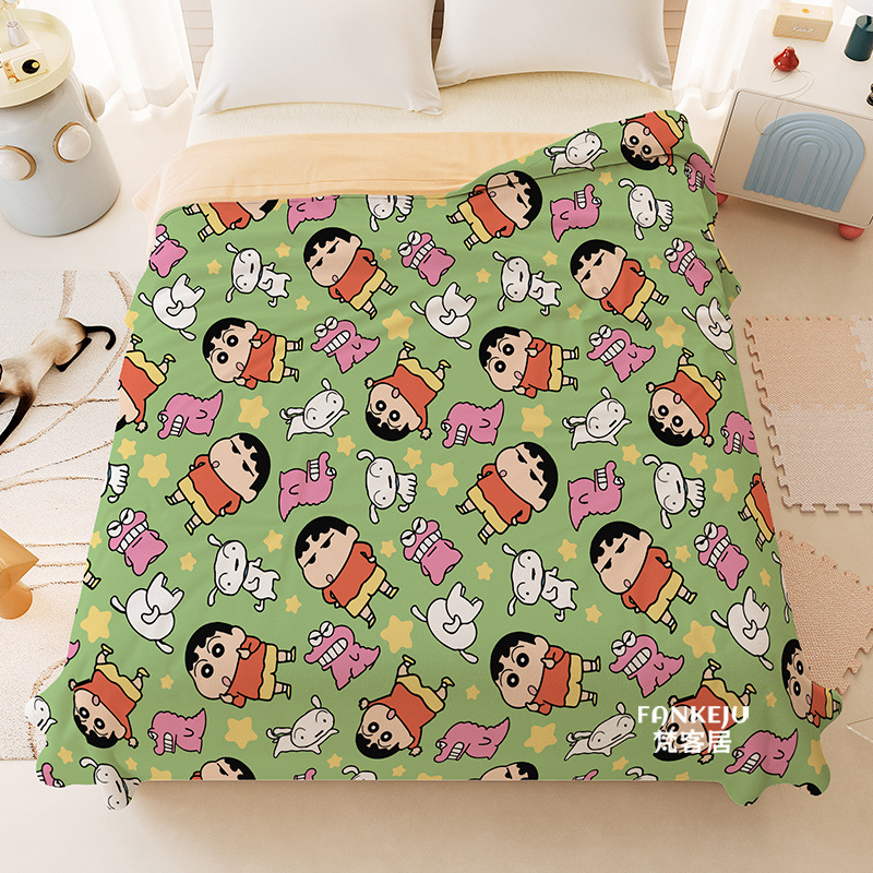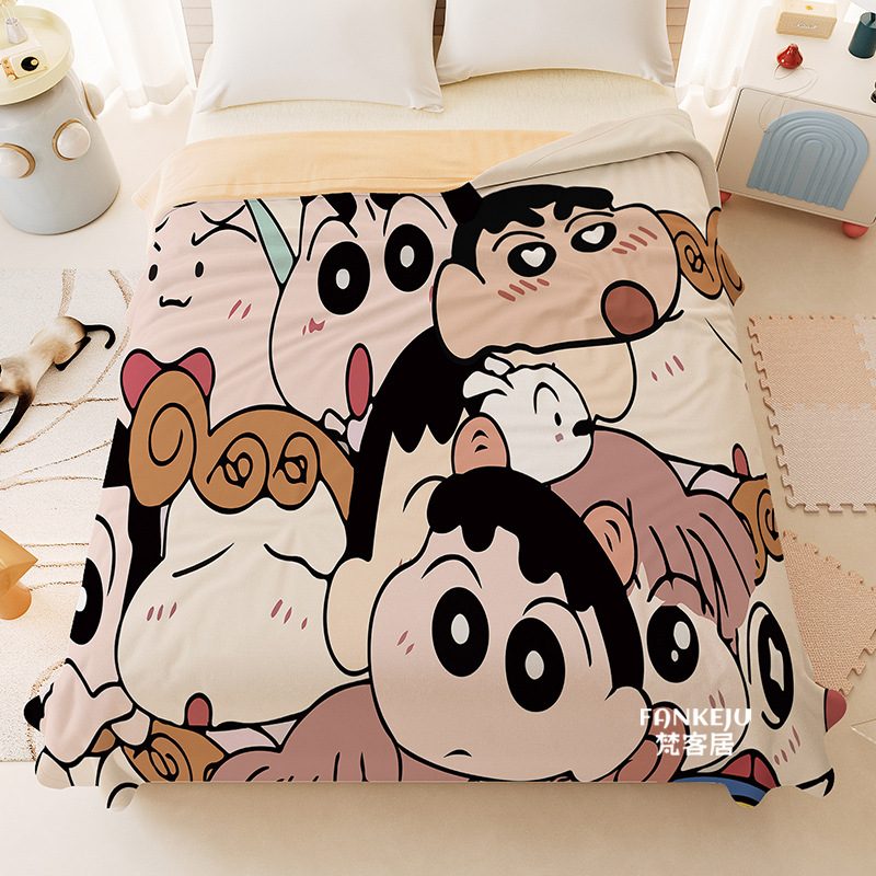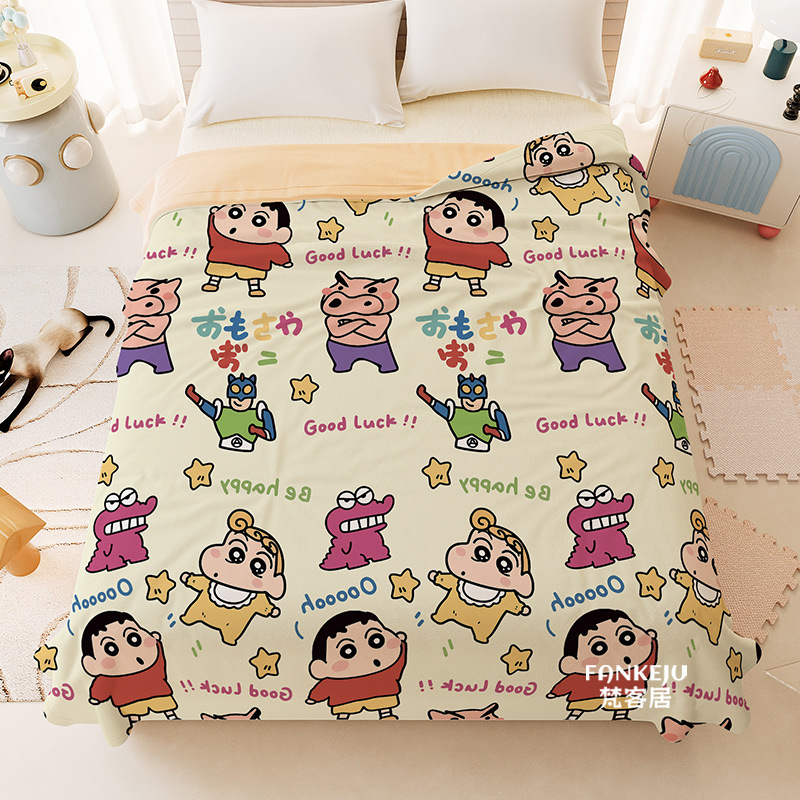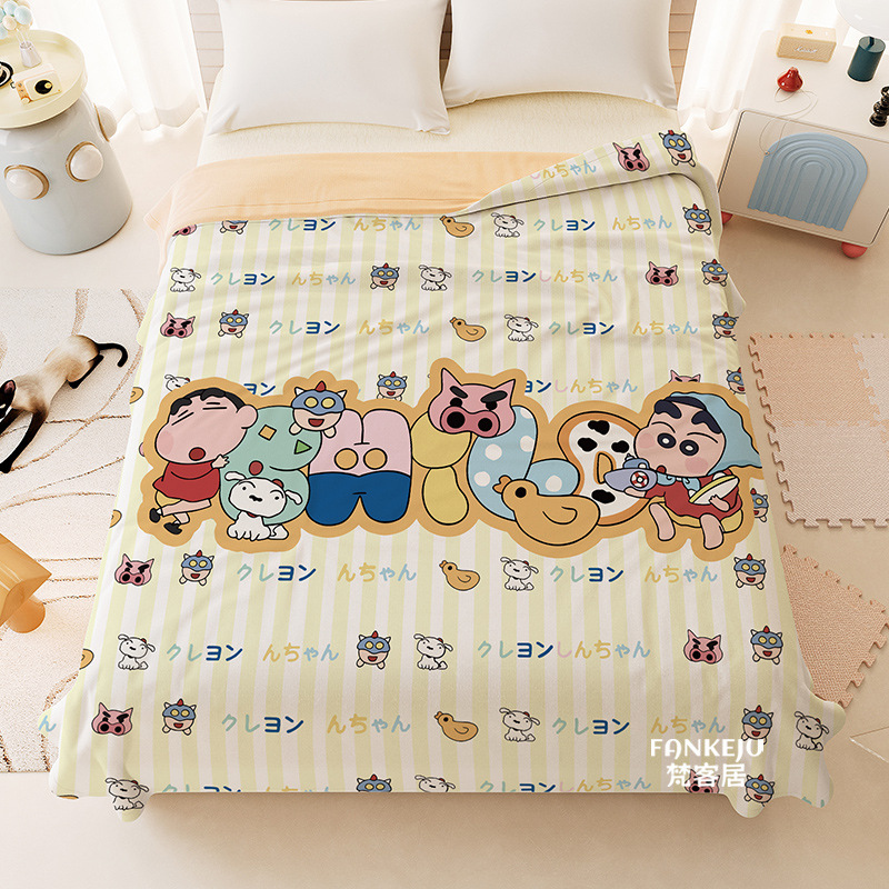일본 크레용 신짱 면 에어컨 이불 여름 얇은 이불 어린이 피부 친화적 인 통기성 만화 학생 기숙사 싱글 이불