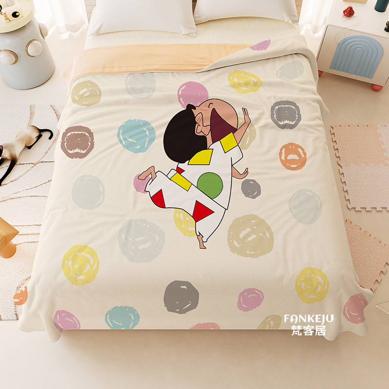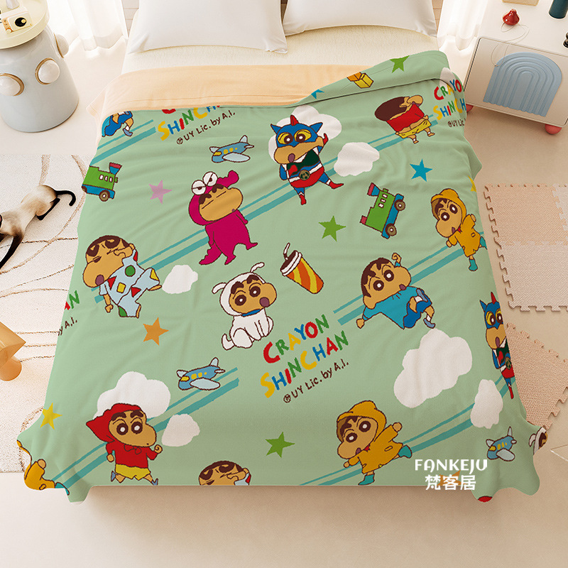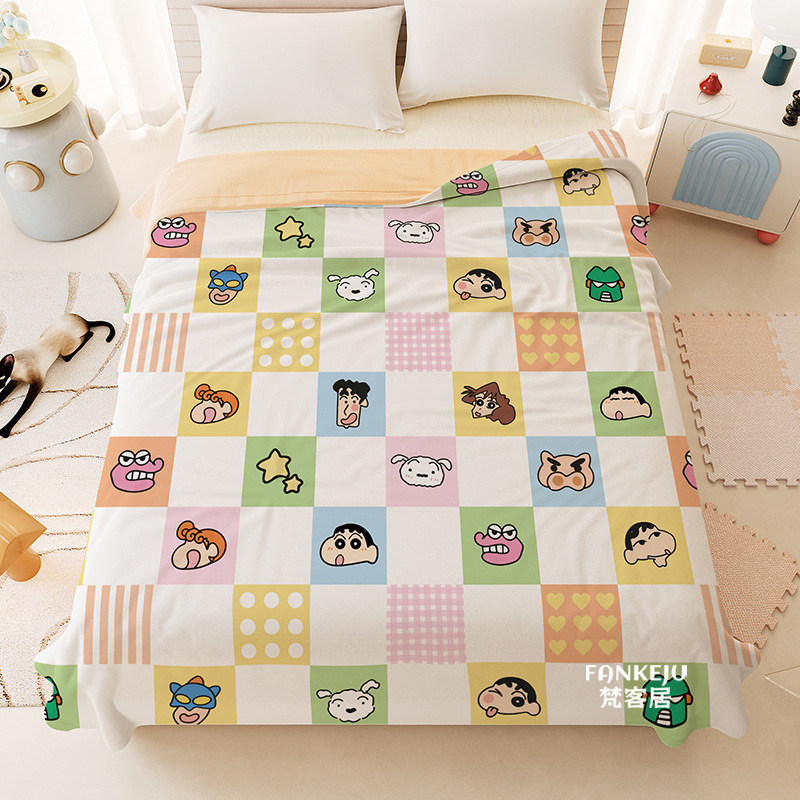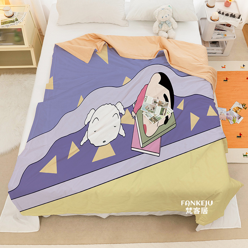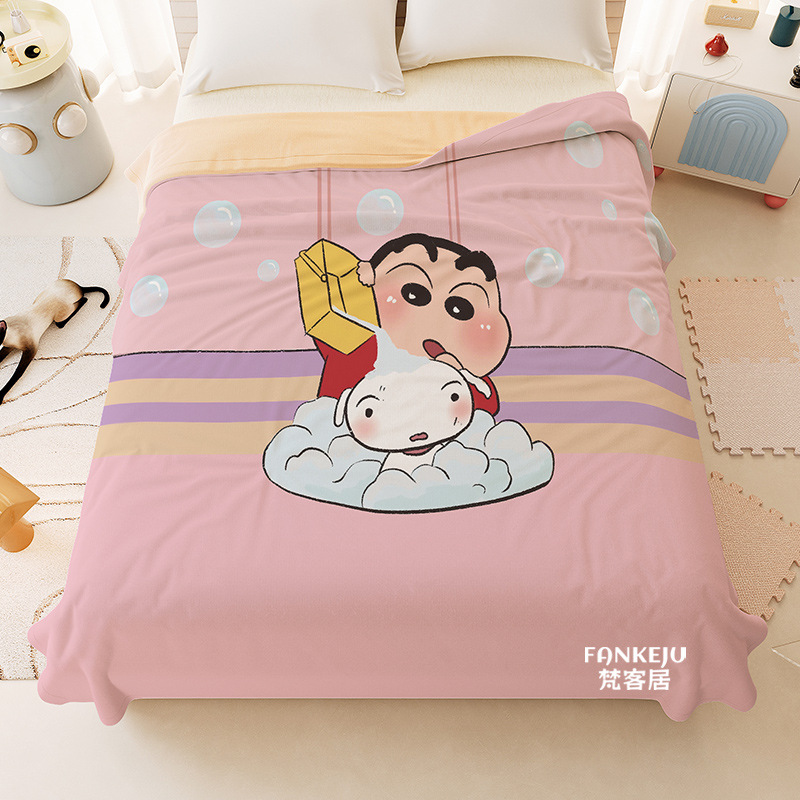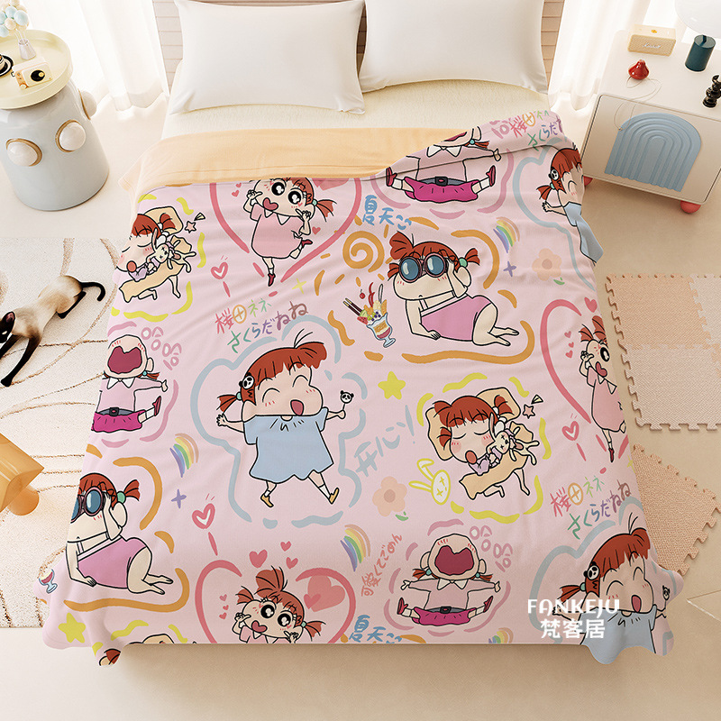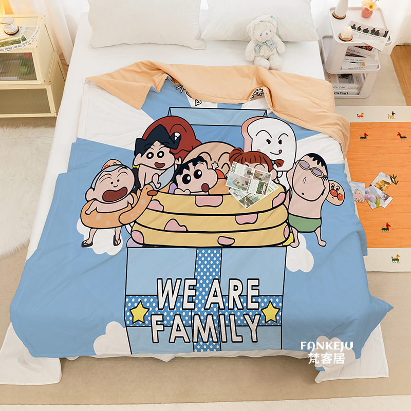 일본 크레용 신짱 면 에어컨 이불 여름 얇은 이불 어린이 피부 친화적 인 통기성 만화 학생 기숙사 싱글 이불