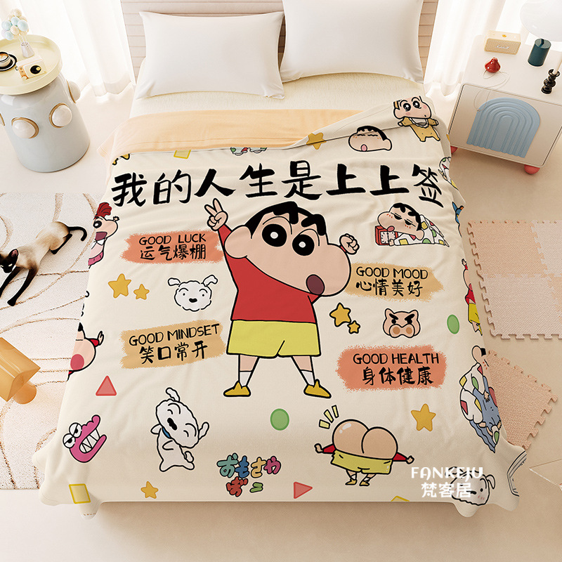 일본 크레용 신짱 면 에어컨 이불 여름 얇은 이불 어린이 피부 친화적 인 통기성 만화 학생 기숙사 싱글 이불스토어 가기
